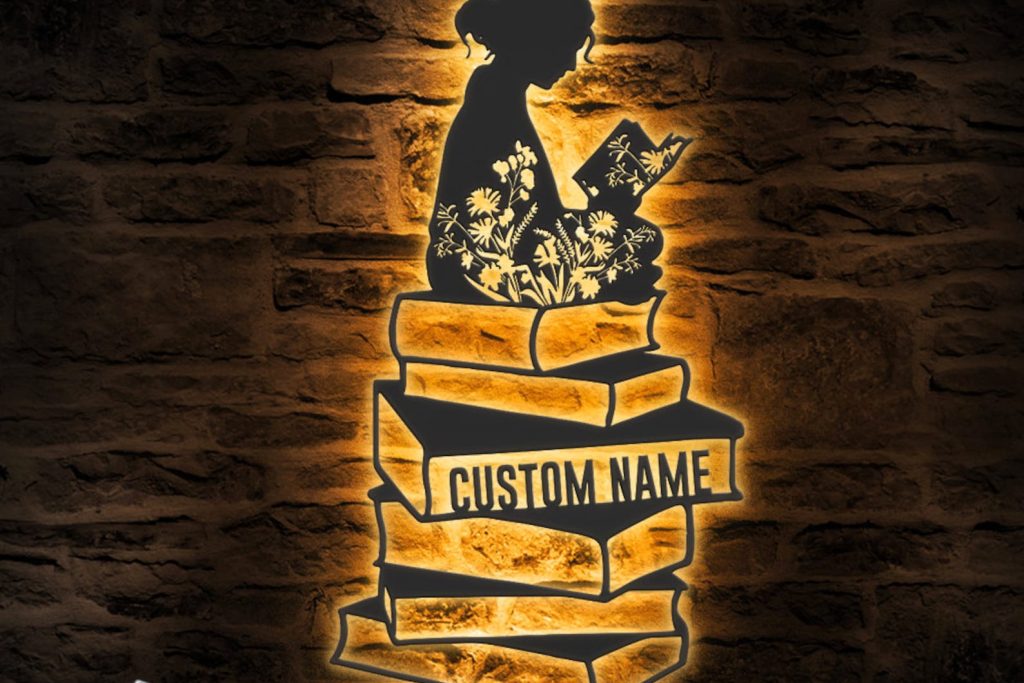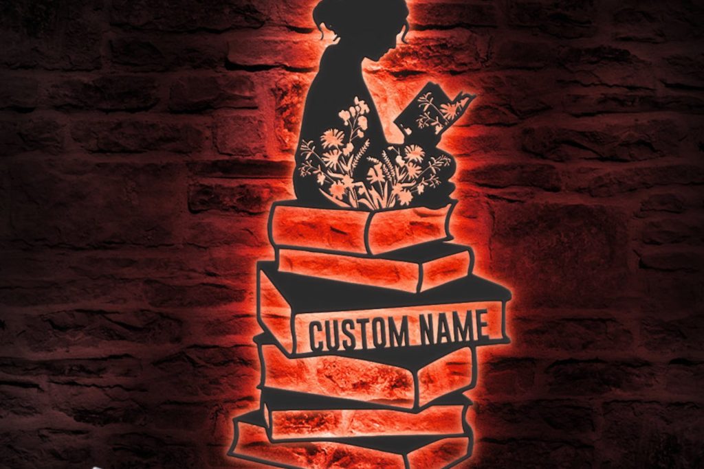 Be the first to review “Custom Girl Reading Metal Art with LED Light”