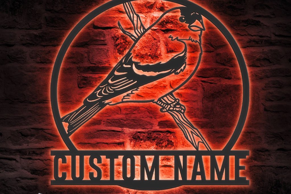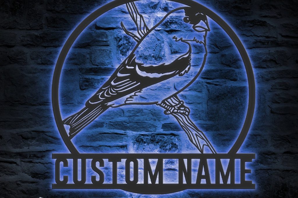 Custom Goldfinch Metal Wall Art with LED – Personalized Bird Lover Sign