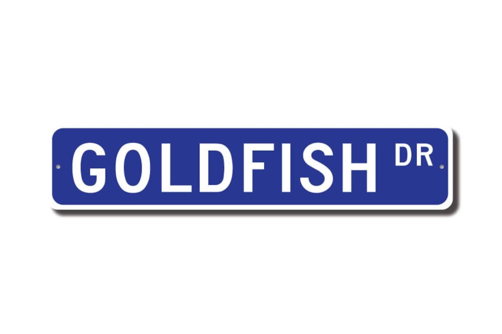 Goldfish lovers check out this awesome street sign! This will make the perfect piece for any Goldfish lover, or maybe you are a Goldfish fan looking for a cool decor piece. Made of premium aluminum it will stand the test of time. This sign will look great in any room, home den, cave, or office! Get this sign for your favorite Goldfish aficionado !