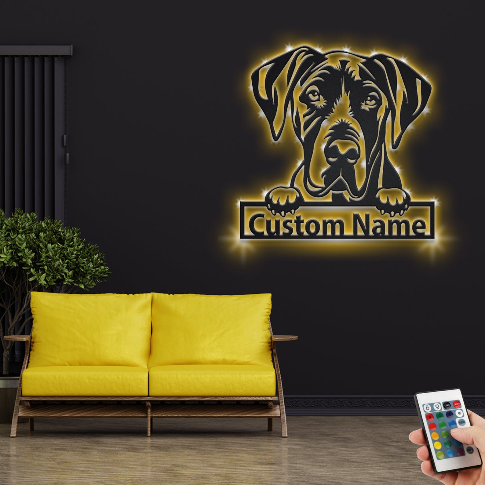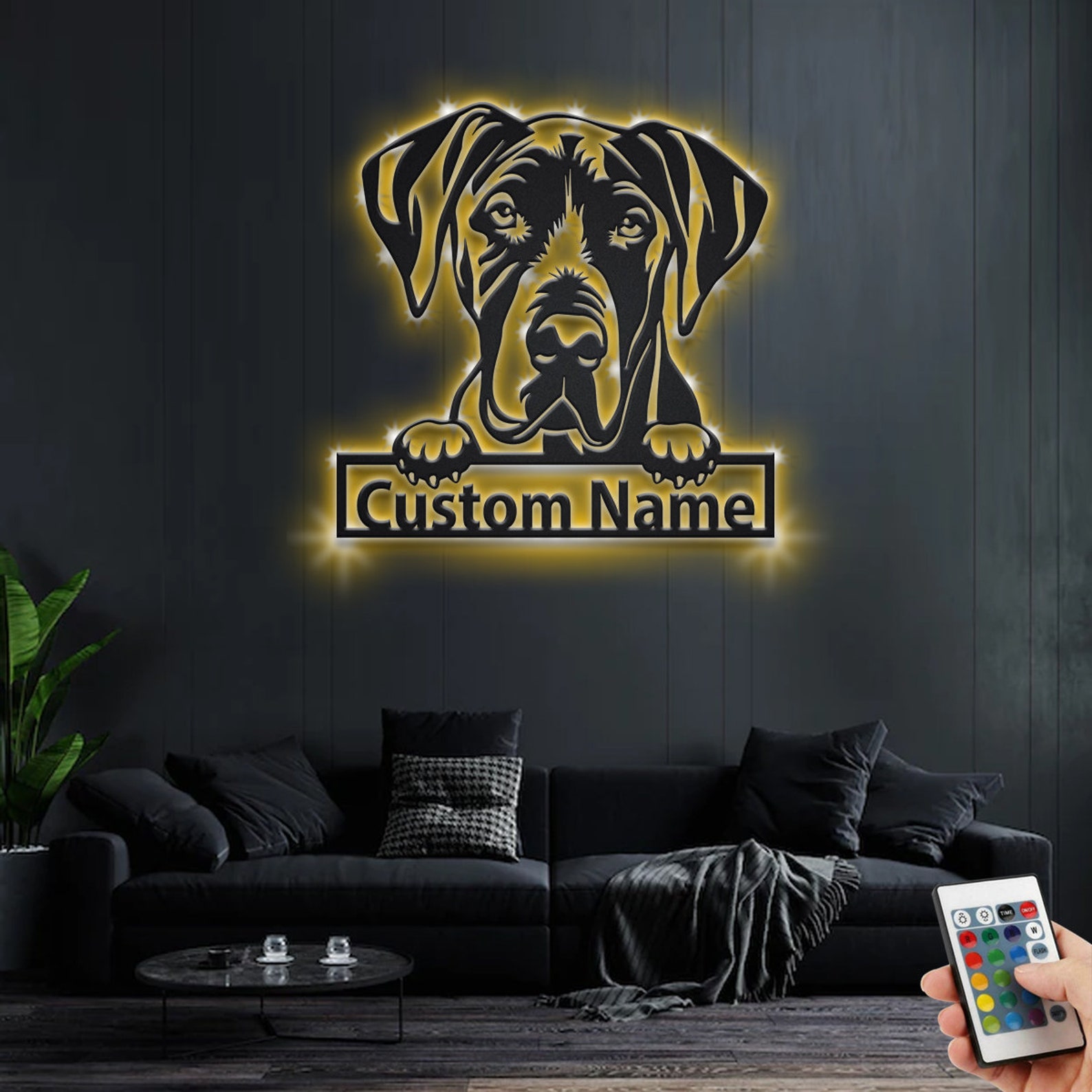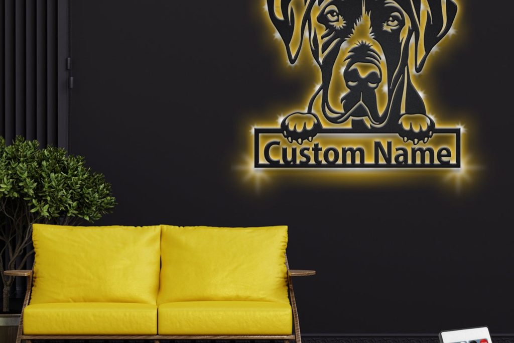 Custom Great Dane Metal Sign with LED – Room Decoration