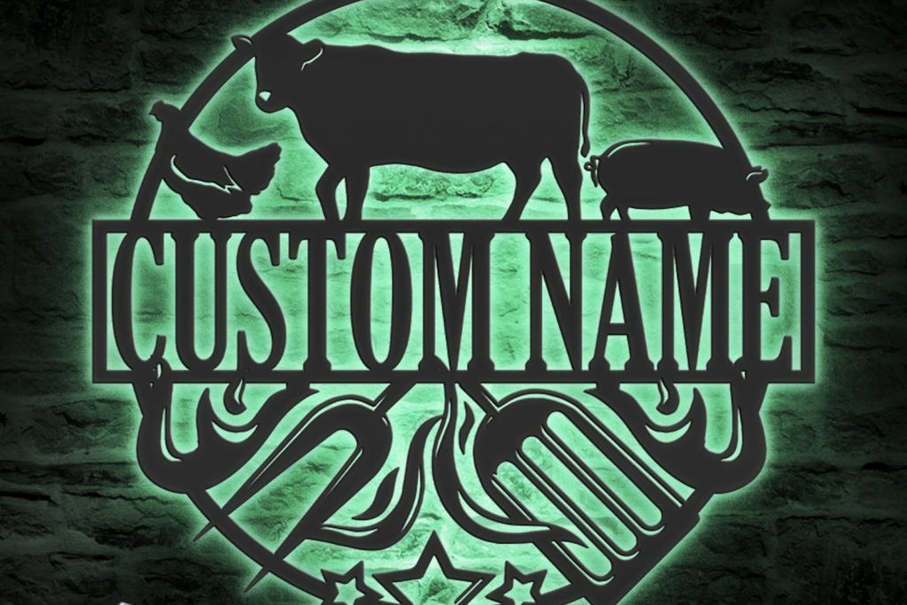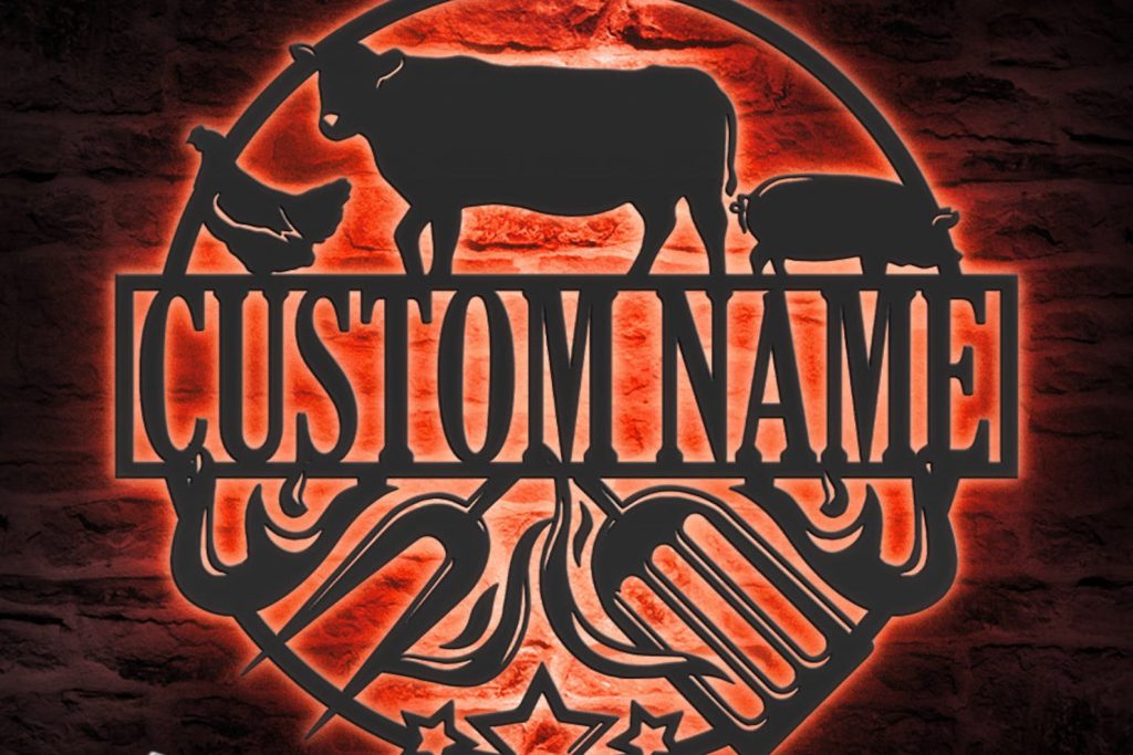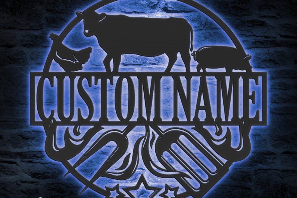 Custom Grill Metal Wall Art – LED Light BBQ Sign