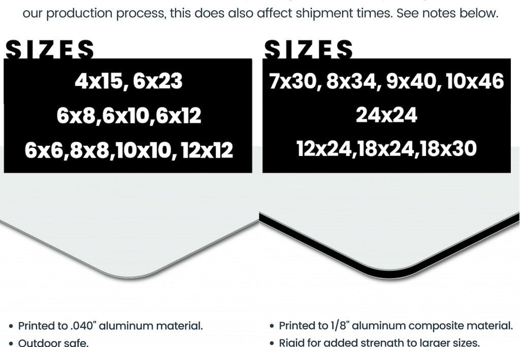 Often used for rental property signage, gift giving, directional signs, wayfinding signs, warning signs, custom sign outdoor, parking signs, yard signs, school signage, logo signs, street signs, exhibit and display signs, pet enclosures, insides jokes, general labeling and more! Unleash your creative potential with our custom metal signs.