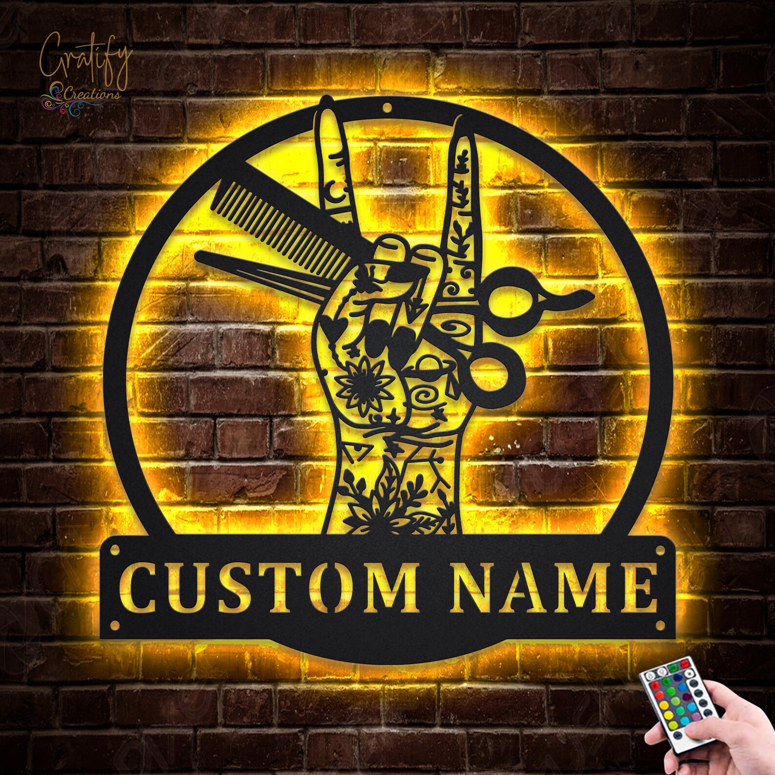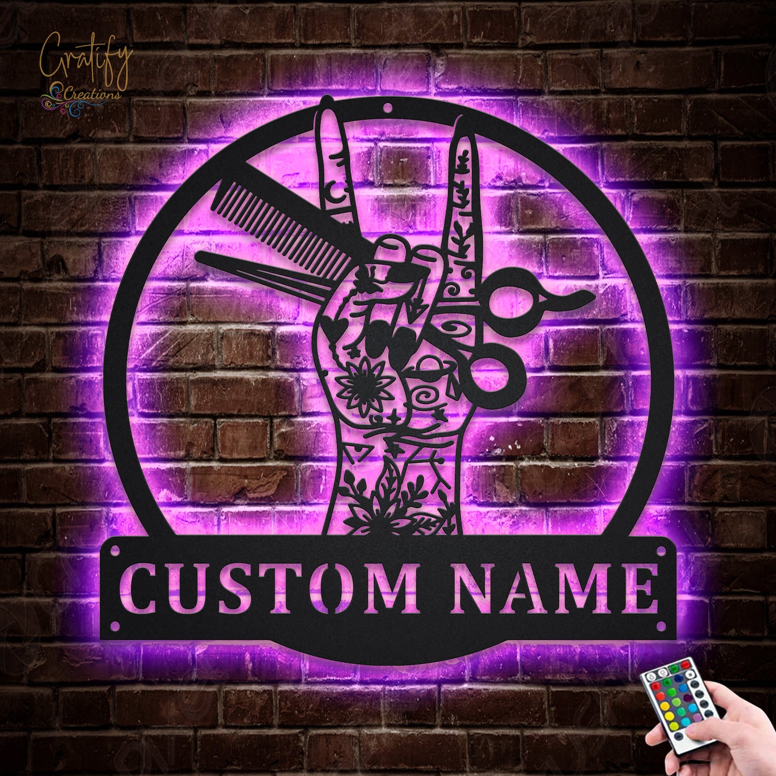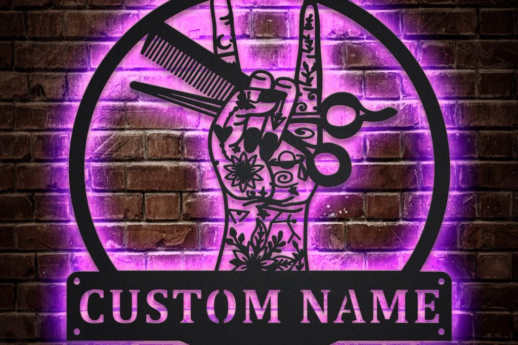 Be the first to review “Custom Hair Hustler Metal Sign with LED Lights V3”