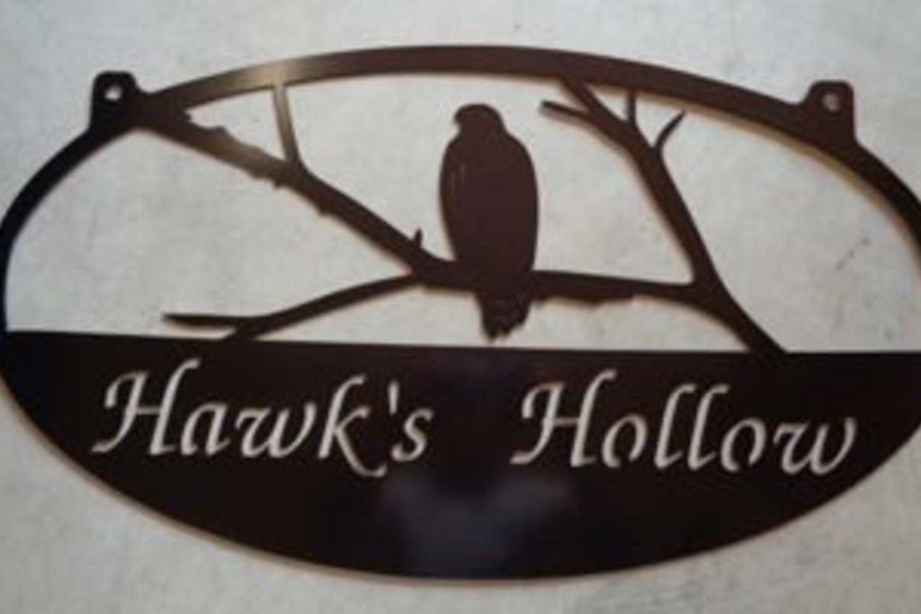 Gorgeous metal sign with hawk measures 30" " or 36 or 48" .. Finish is a durable baked on powder coat finish. Also available in our gorgeous patinas with baked on clear coat