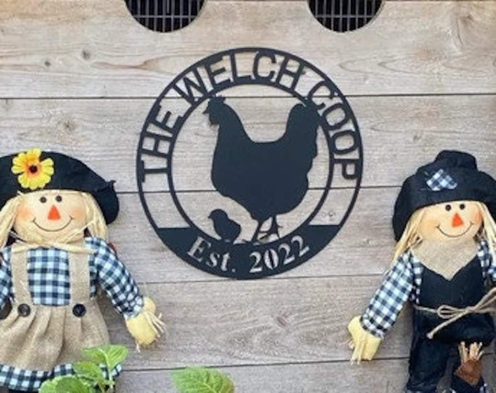 Custom Hen House Sign, Hen House Coop Sign, Our Little Coop Metal Sign, Metal Chicken Coop Sign, Personalized Chicken Coop house sign, Chicks, Outdoor Sign, Hen House, Barn Decor, Eggs Farmhouse Name Sign, Garden, Established Date, Farmer Gift, Chicken Lover Gift, Hen Coop Sign
