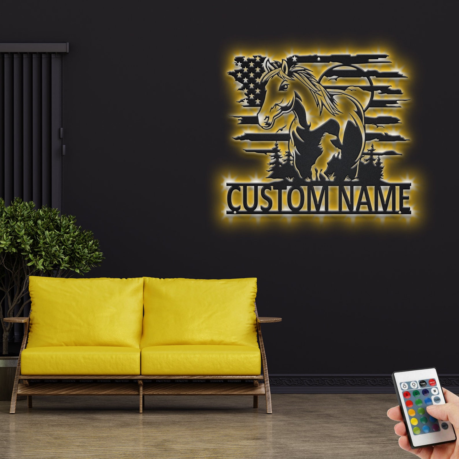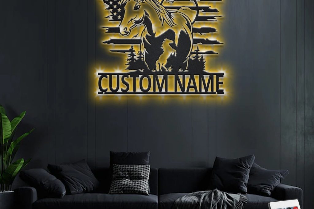 Be the first to review “Custom Horse Metal Wall Art with LED Light”