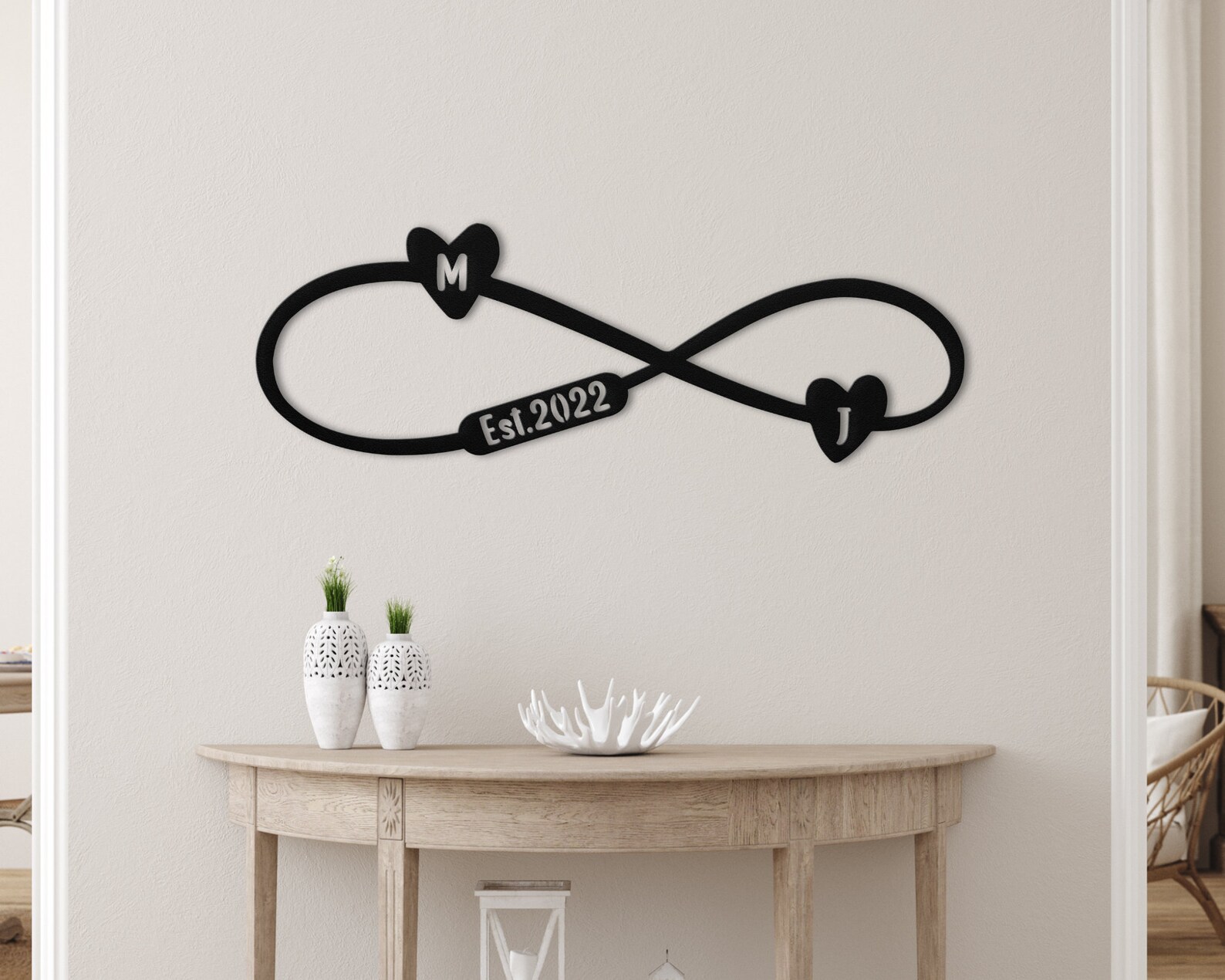 Enhance your home decor with this trendy infinity heart metal sign. This established sign is made up with 18 gauge steel. It will give the touch of elegance to your wall by adding this steel sign inside your bedroom, living room or any place of your choice!