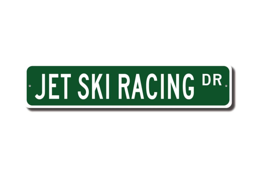 Jet Ski Racing lovers check out this awesome street sign! This will make the perfect piece for any Jet Ski Racing fan, or maybe you are a Jet Ski Racing lover looking for a cool decor piece ! Made of premium aluminum it will stand the test of time. This sign will look great in any room, home den, cave, or office ! Get this sign for your favorite Jet Ski Racing aficionado !