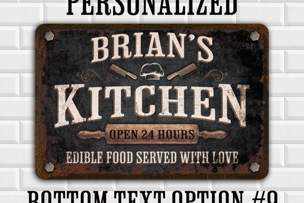 Personalized Black Distressed Metal Kitchen Sign| Customize this Sign with Your Name | Gift for Great Cooks & Chefs | Choose from Many Different Text Options, Some Funny and Some Nice | Designed with a weathered, distressed appearance | For the special person who loves to cook!