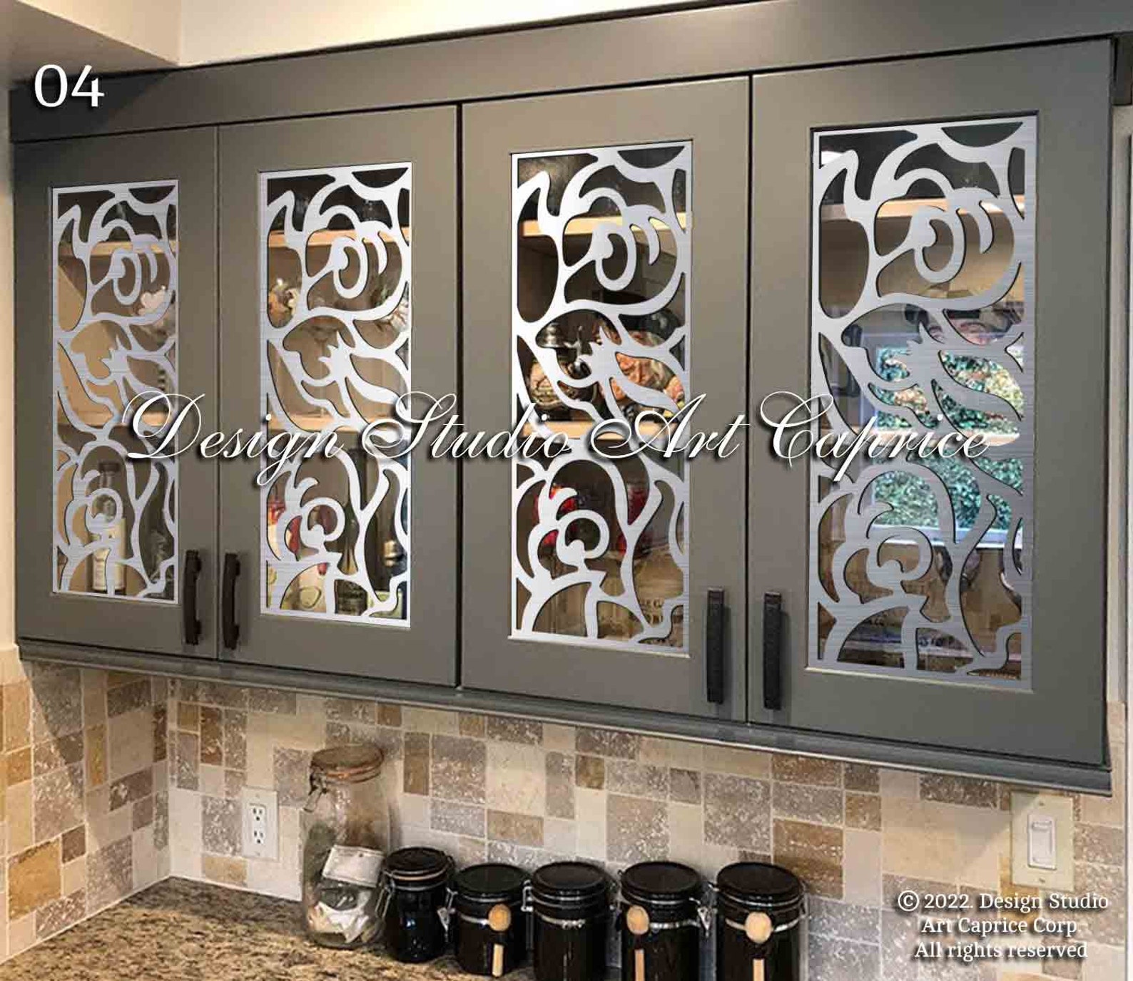 If you are looking for a custom metal mullion production for your cabinet glass door you can choose any design created by Design Studio Art Caprice for a new sophisticated look of your kitchen/wine cabinet glass doors. Compared to other materials, metal mullion inserts possess a much more luxurious look. It will last for long years as a beautiful part of the interior design.