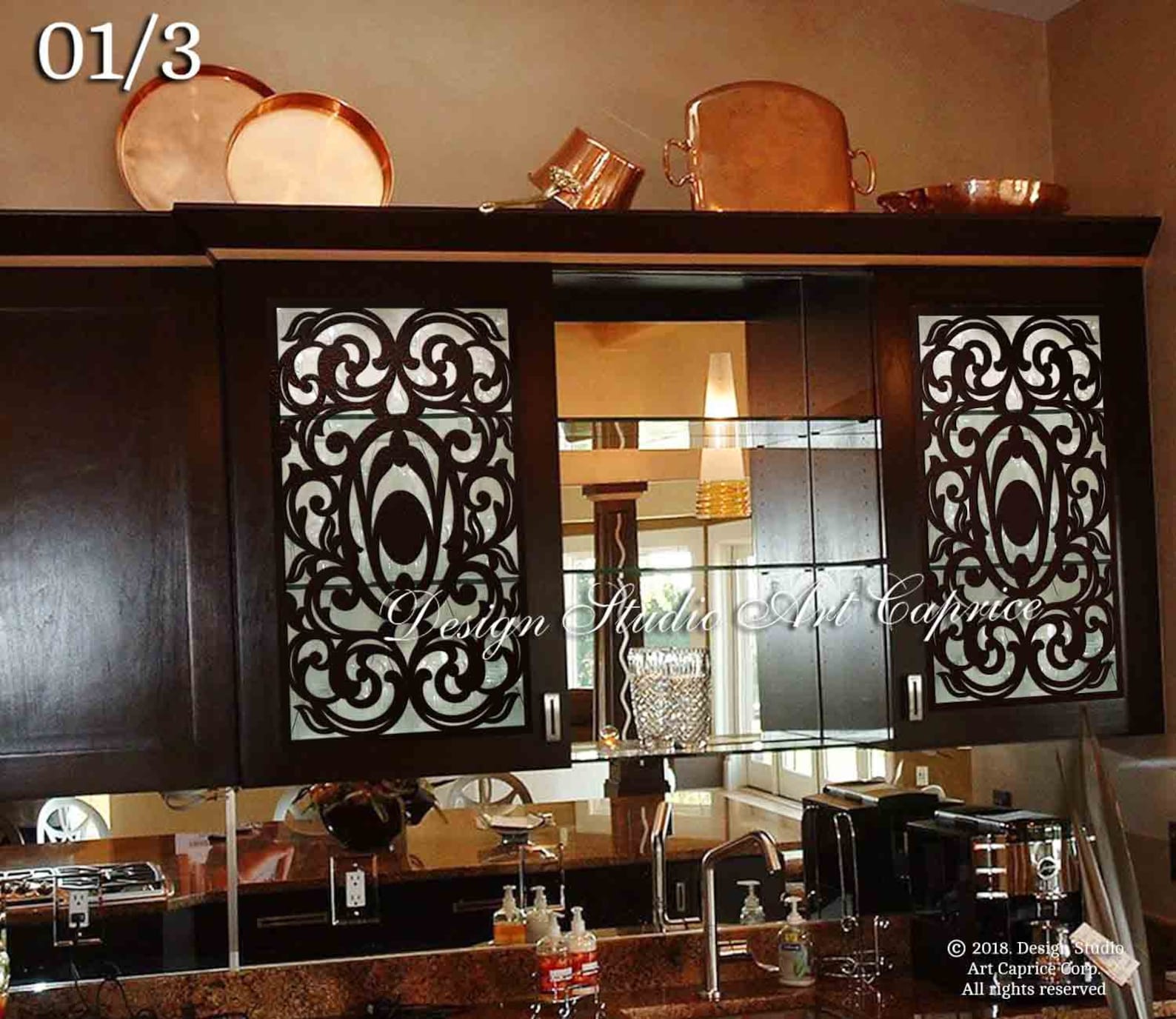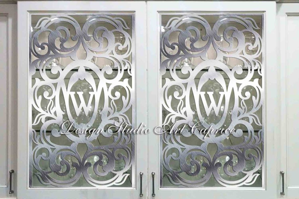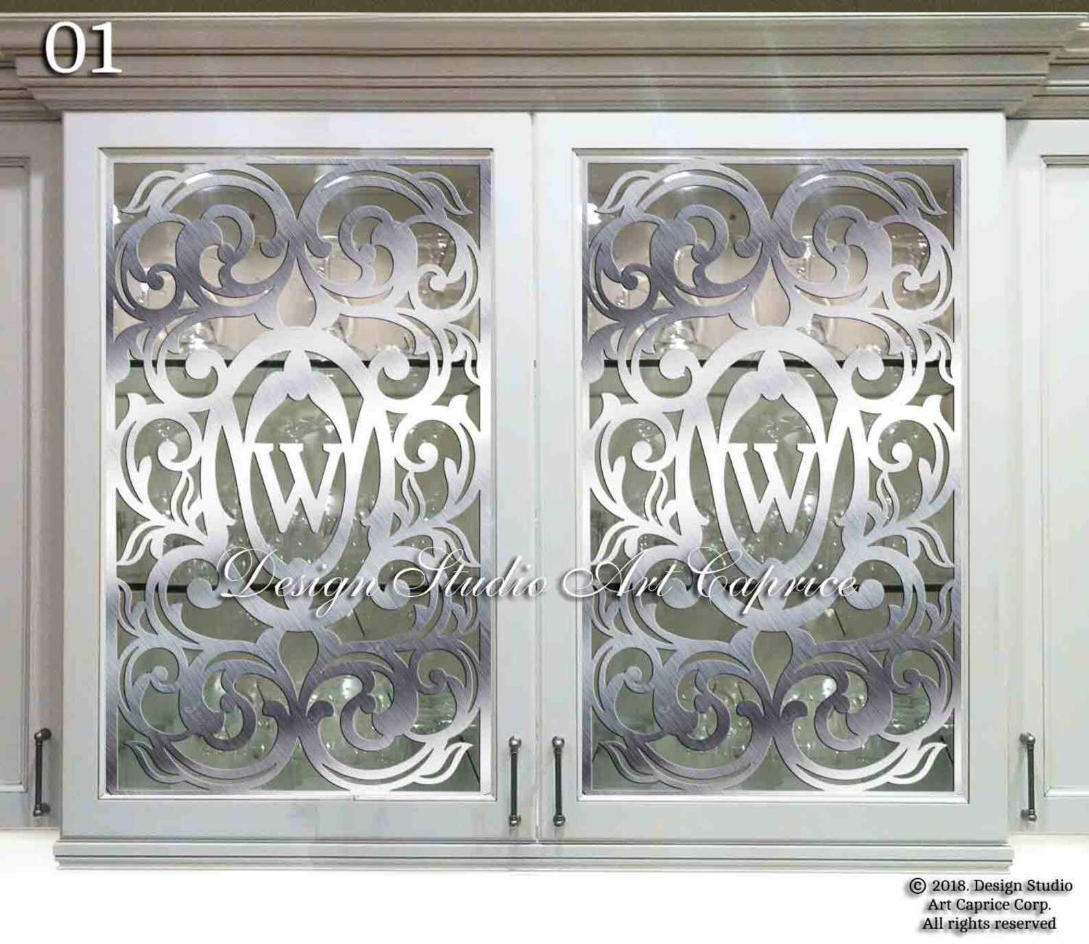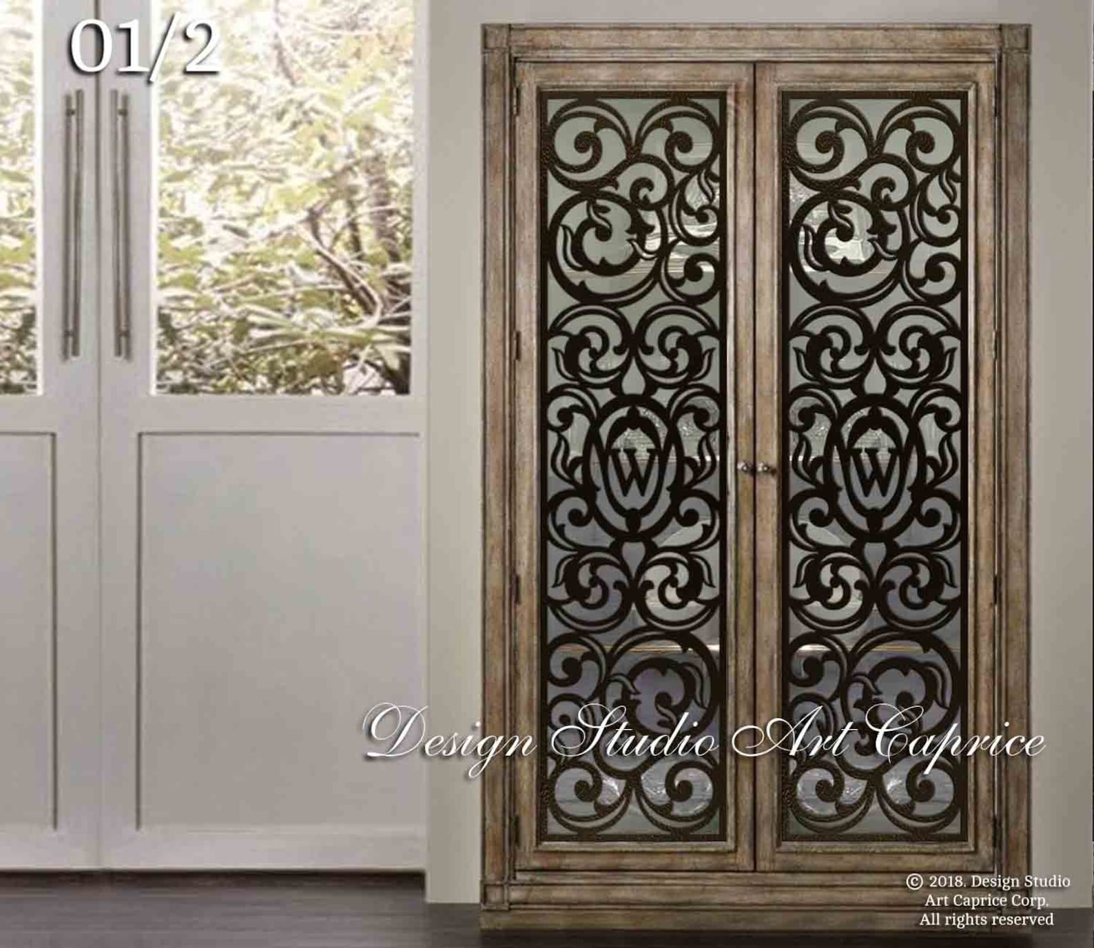 If you are looking for a custom metal mullion production for your cabinet glass door you can choose any design created by Design Studio Art Caprice for a new sophisticated look of your kitchen/wine cabinet glass doors. Compared to other materials, metal mullion inserts possess a much more luxurious look. It will last for long years as a beautiful part of the interior design.