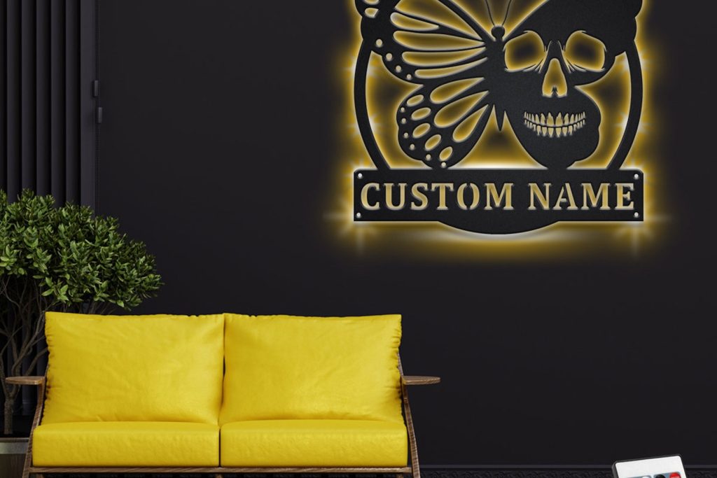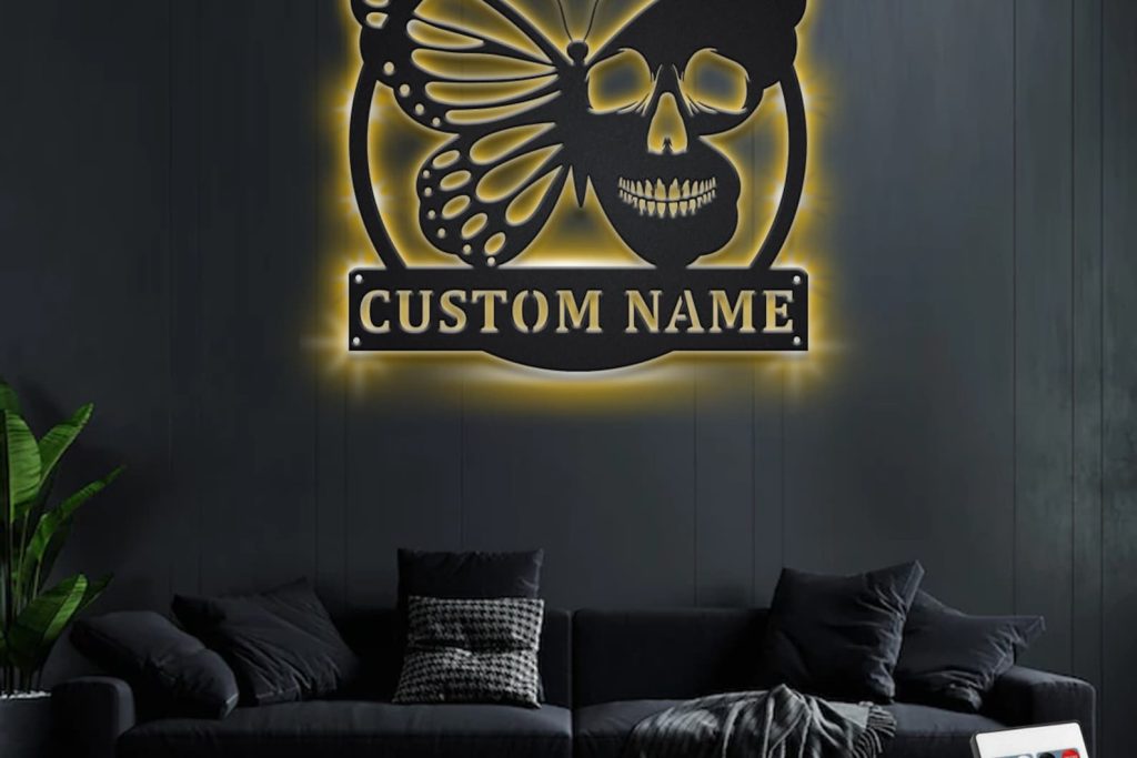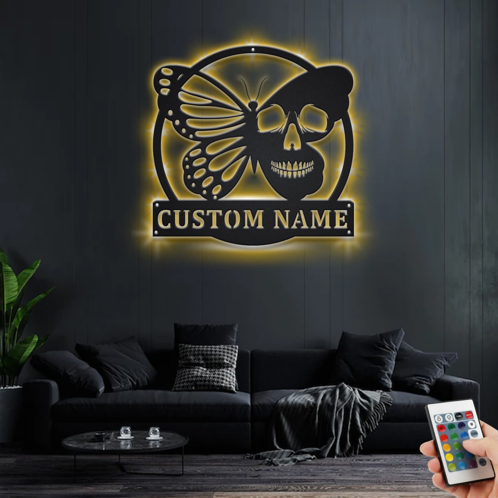 Custom LED Butterfly Skull Art – Gothic Wall Decor