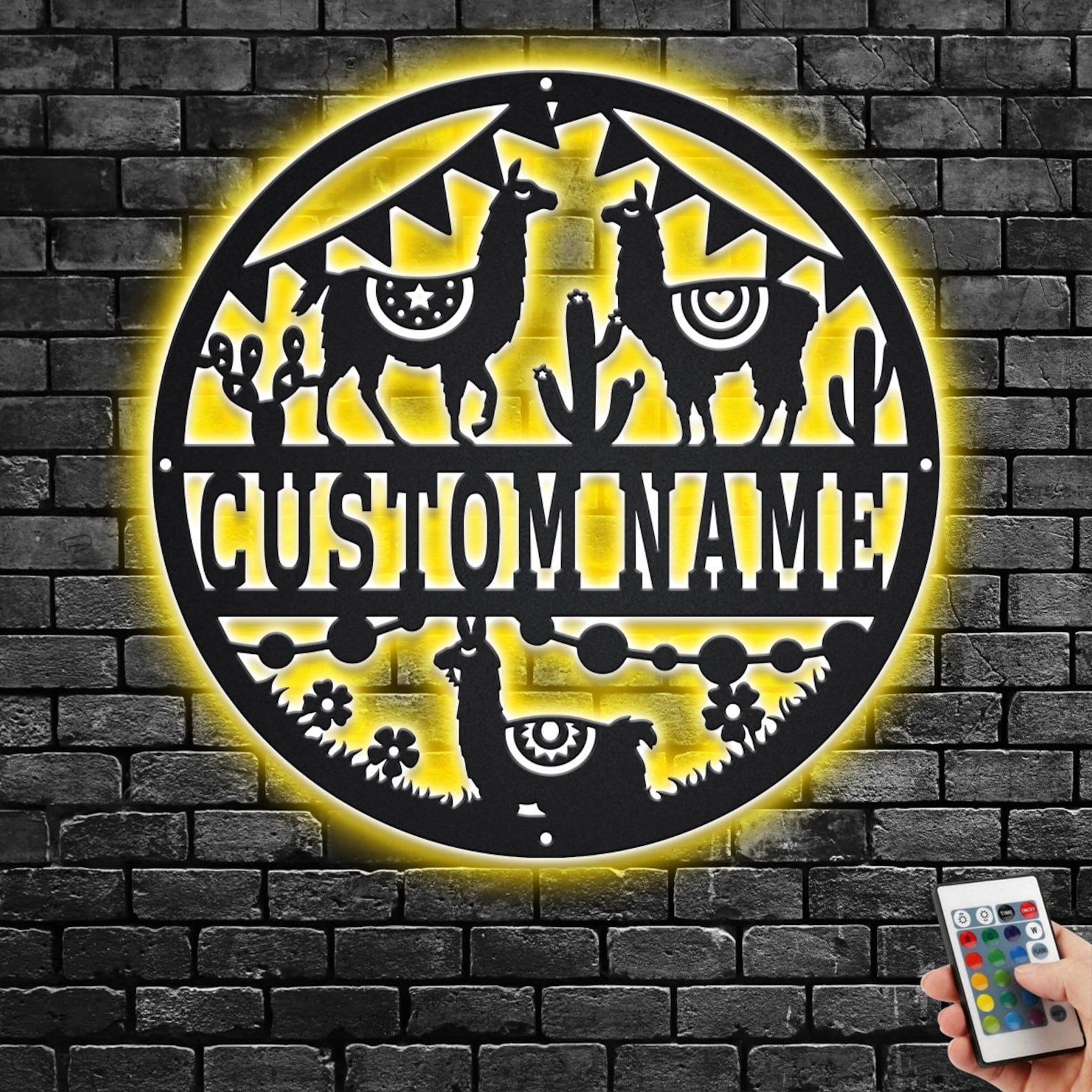 Custom LED Llama Wall Art – Personalized Metal Sign