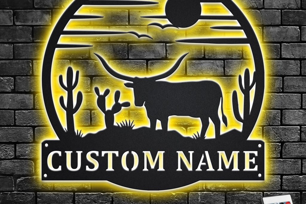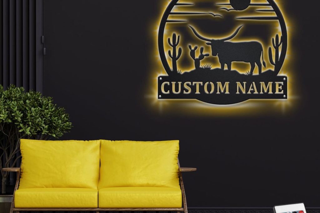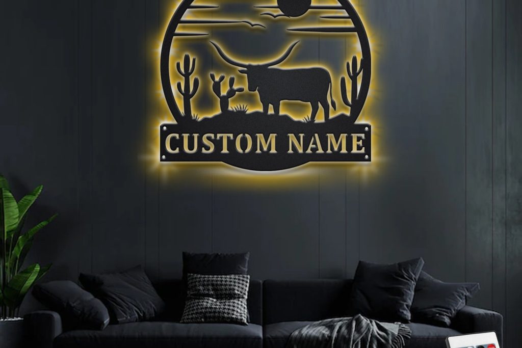 Custom LED Longhorn Wall Art – Personalized Metal Decor
