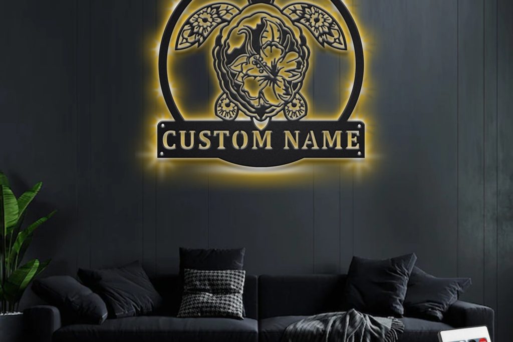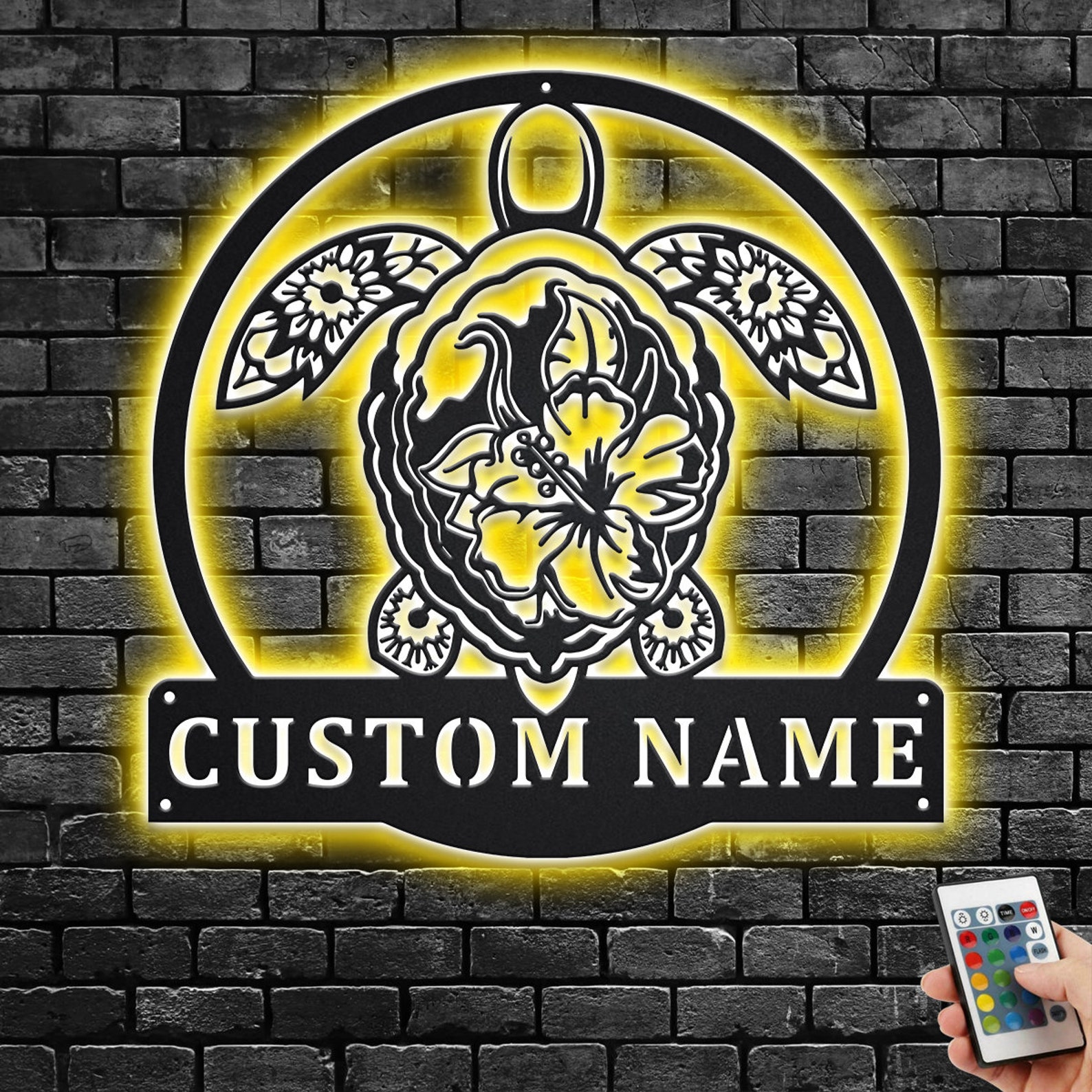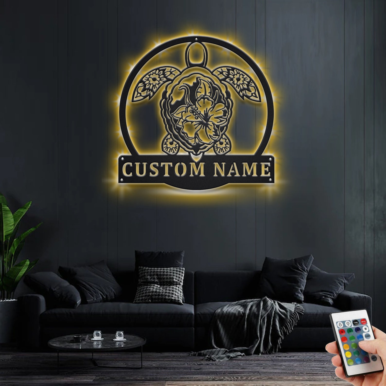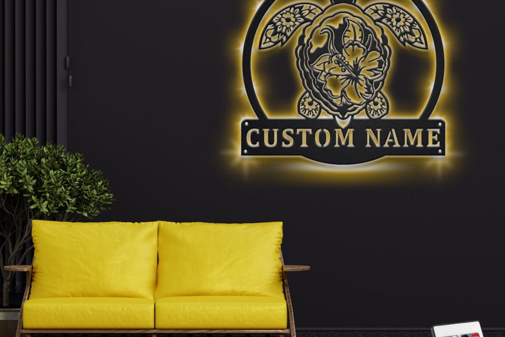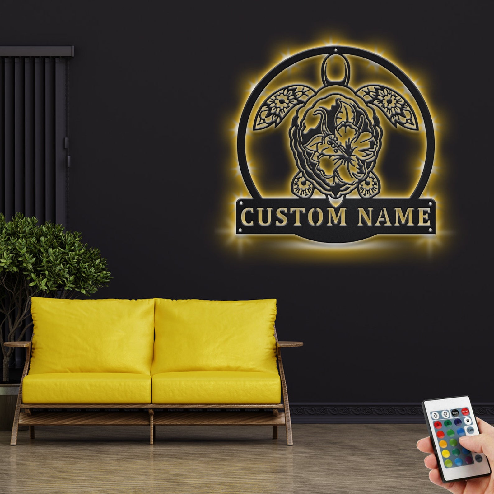Custom LED Tropical Turtle Art – Personalized Beach Decor