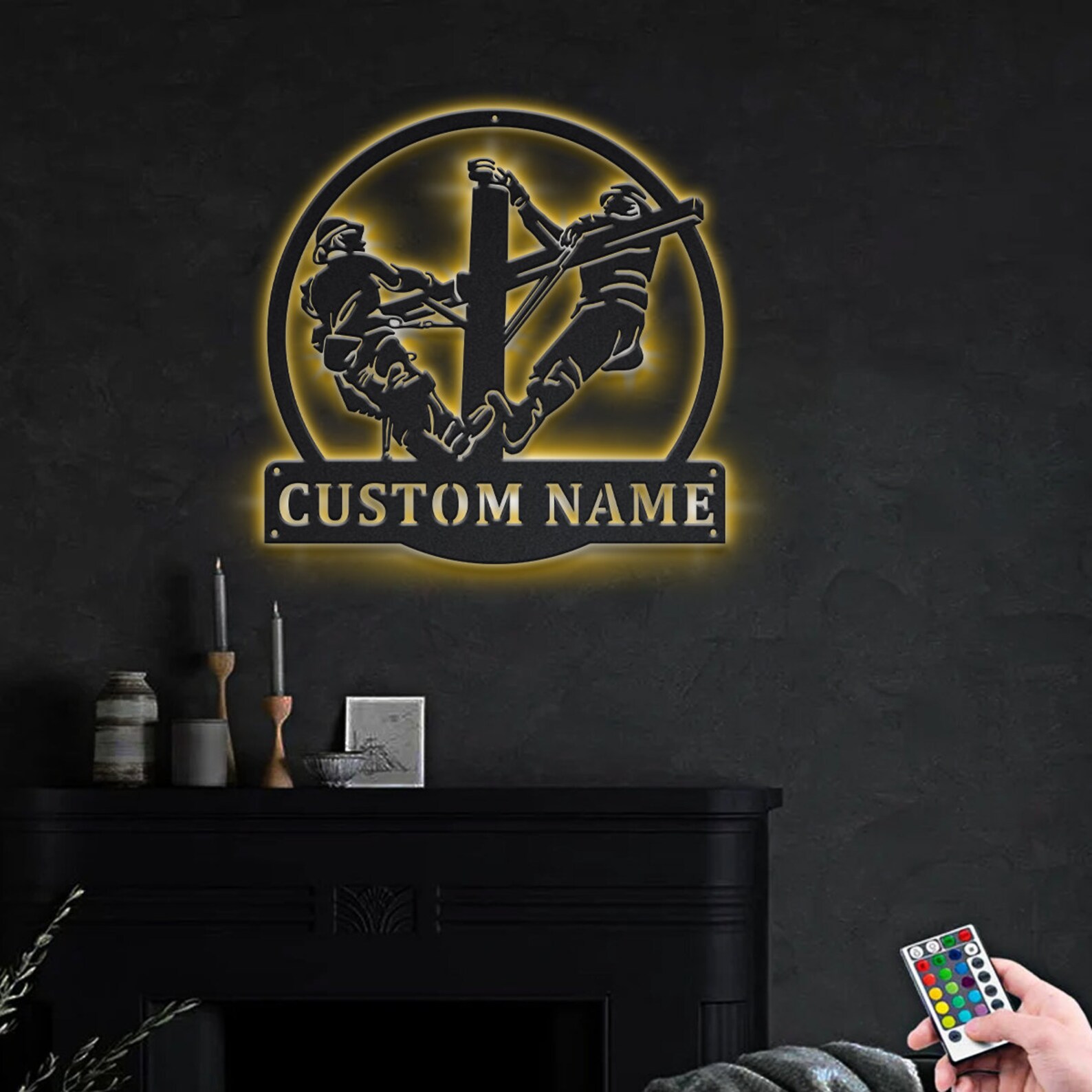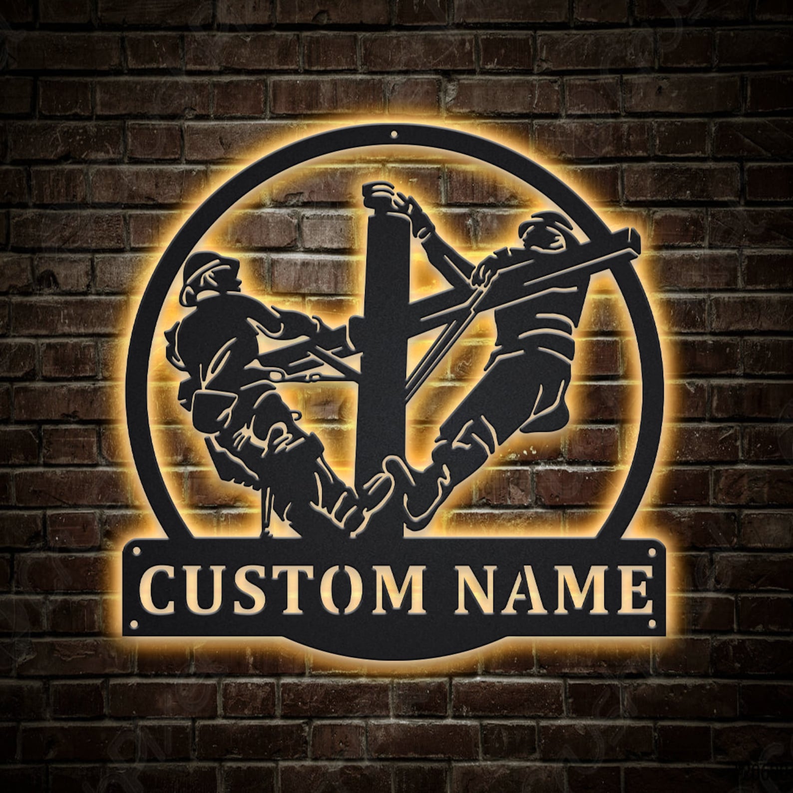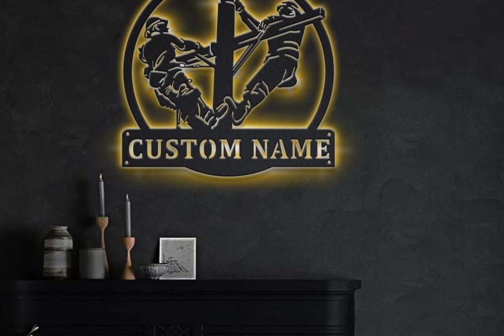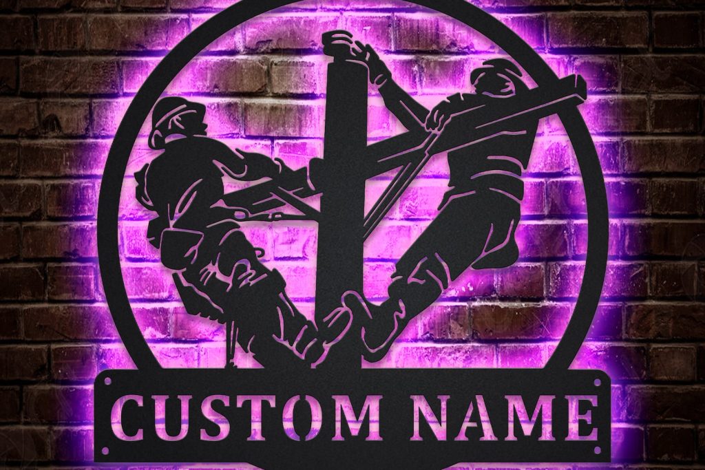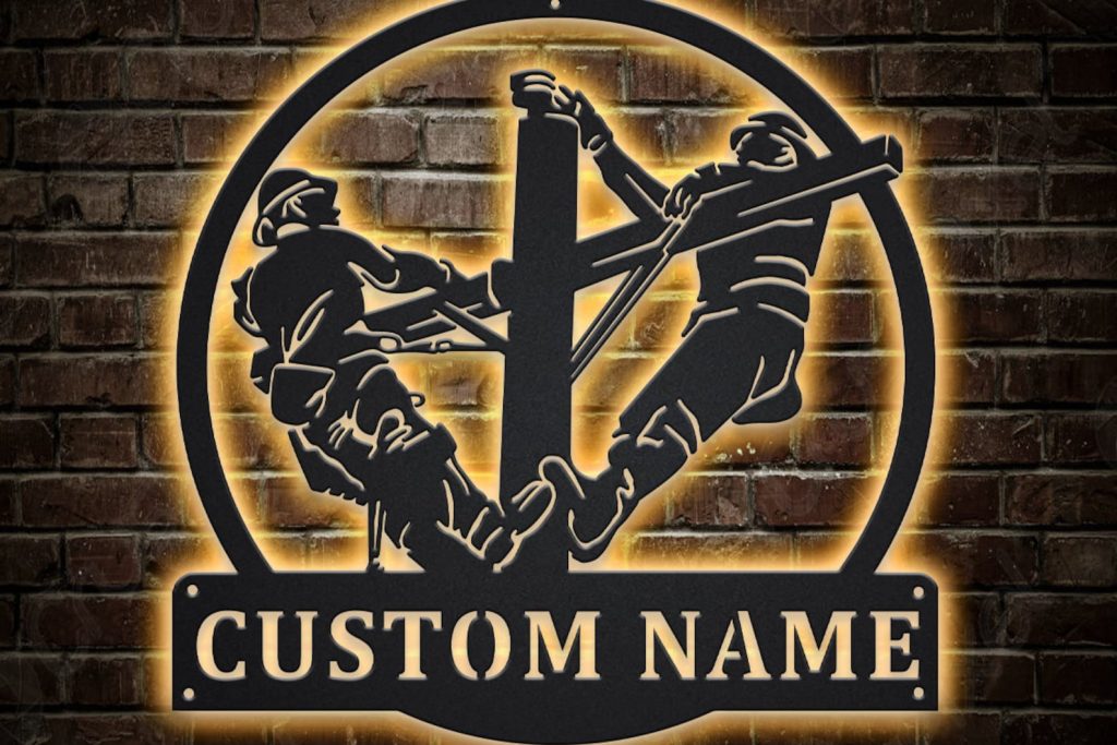 Custom Lineman Metal Sign with LED V1 – Neon Linework Decor