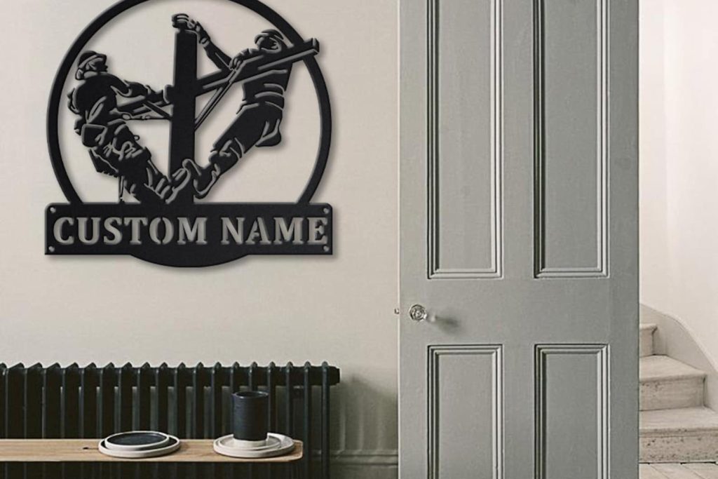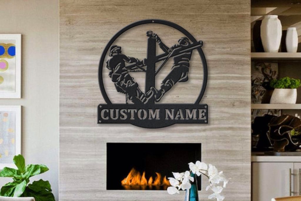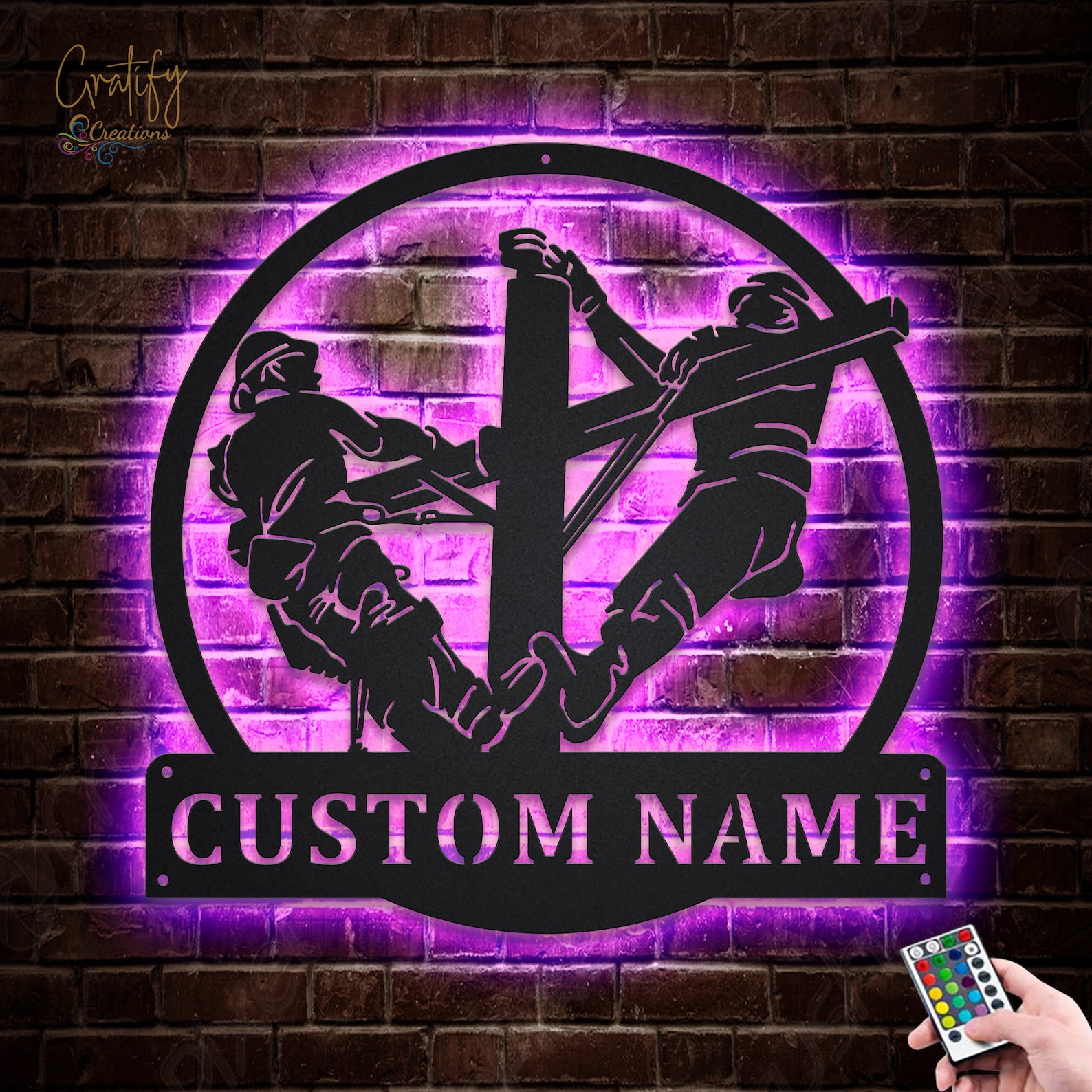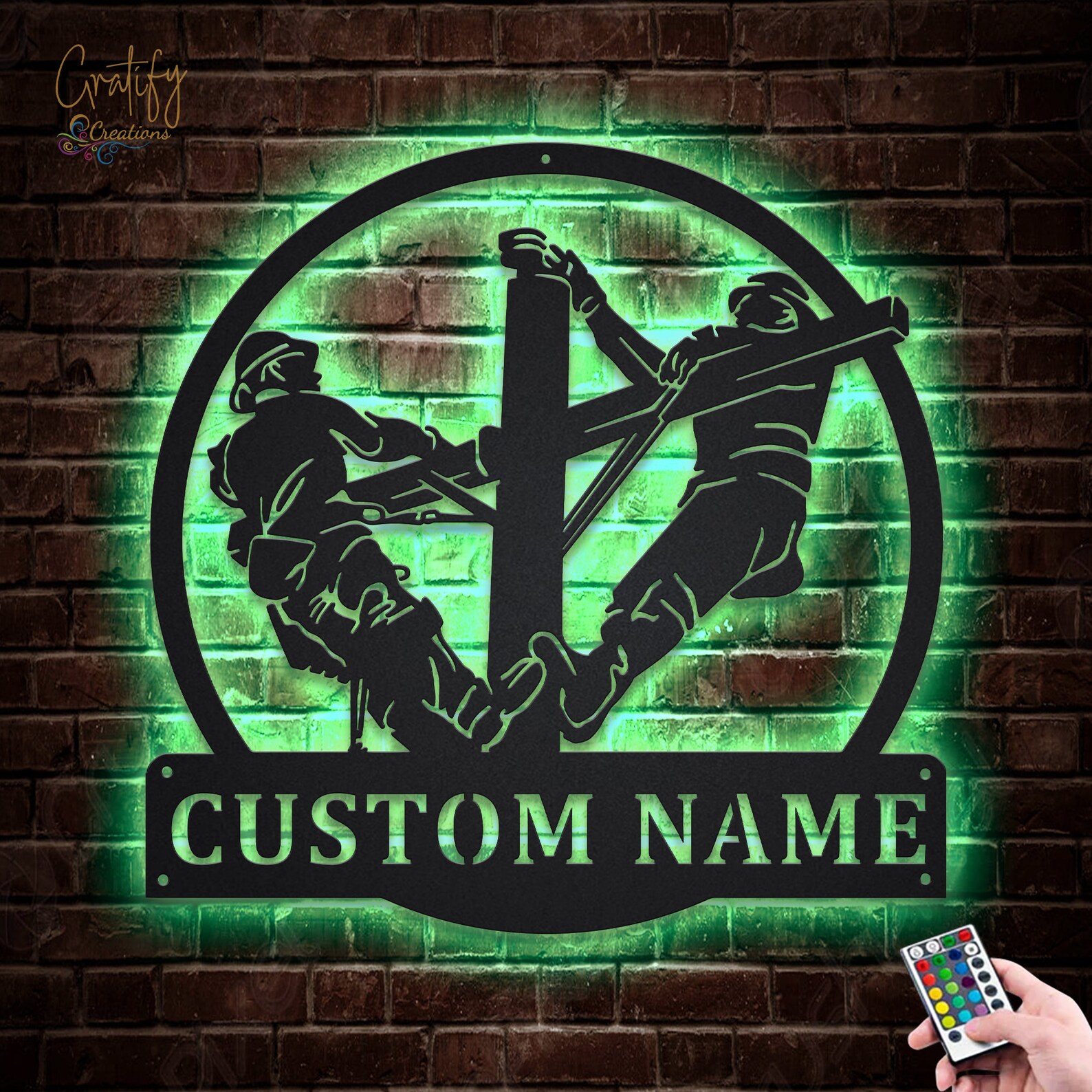 Custom Lineman Metal Sign with LED V1 – Neon Linework Decor