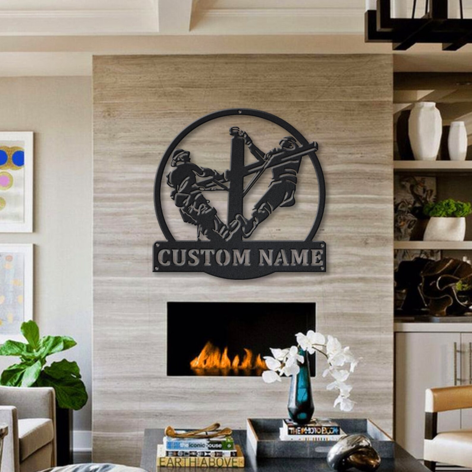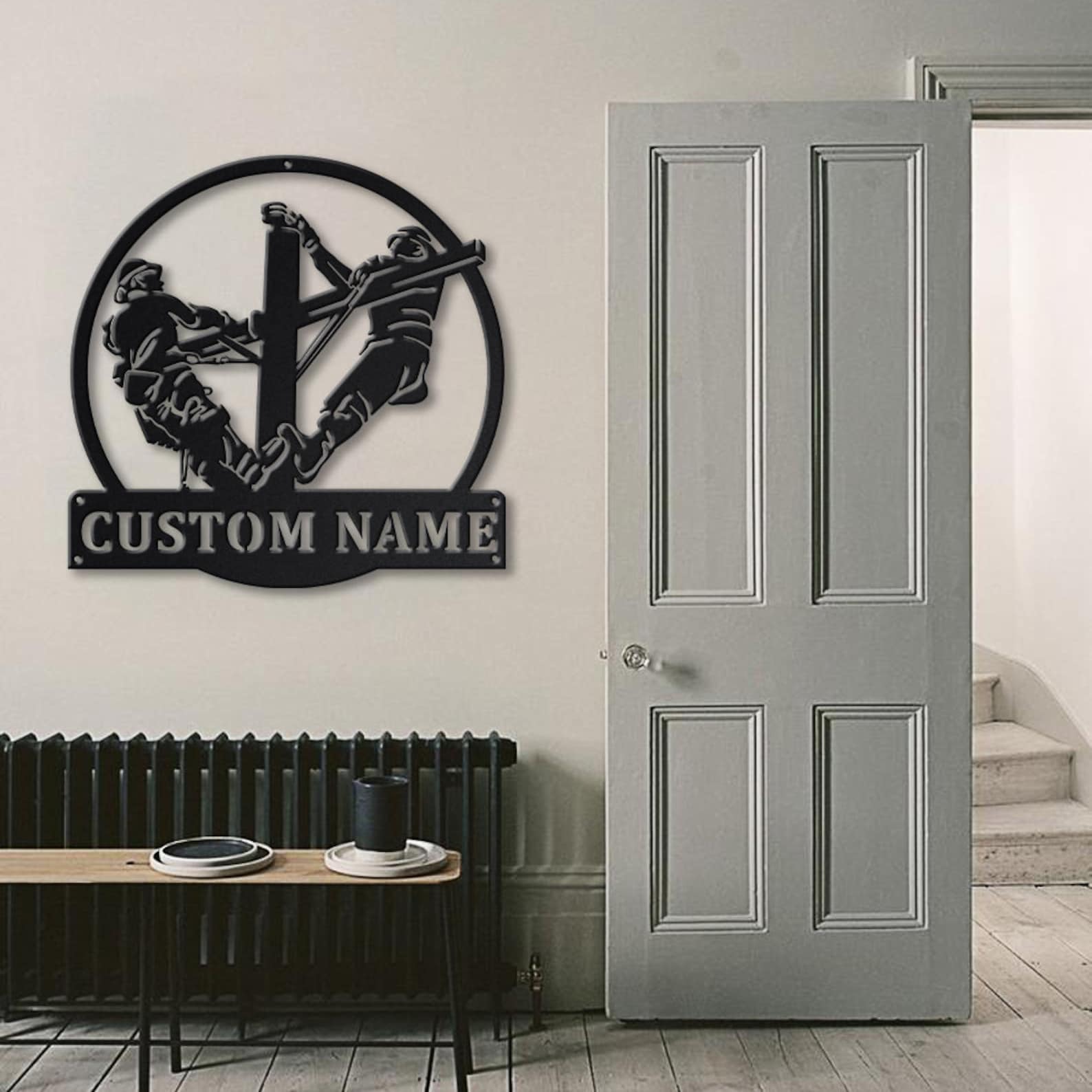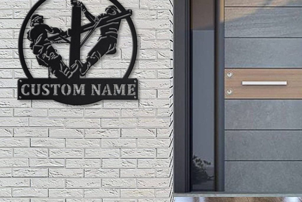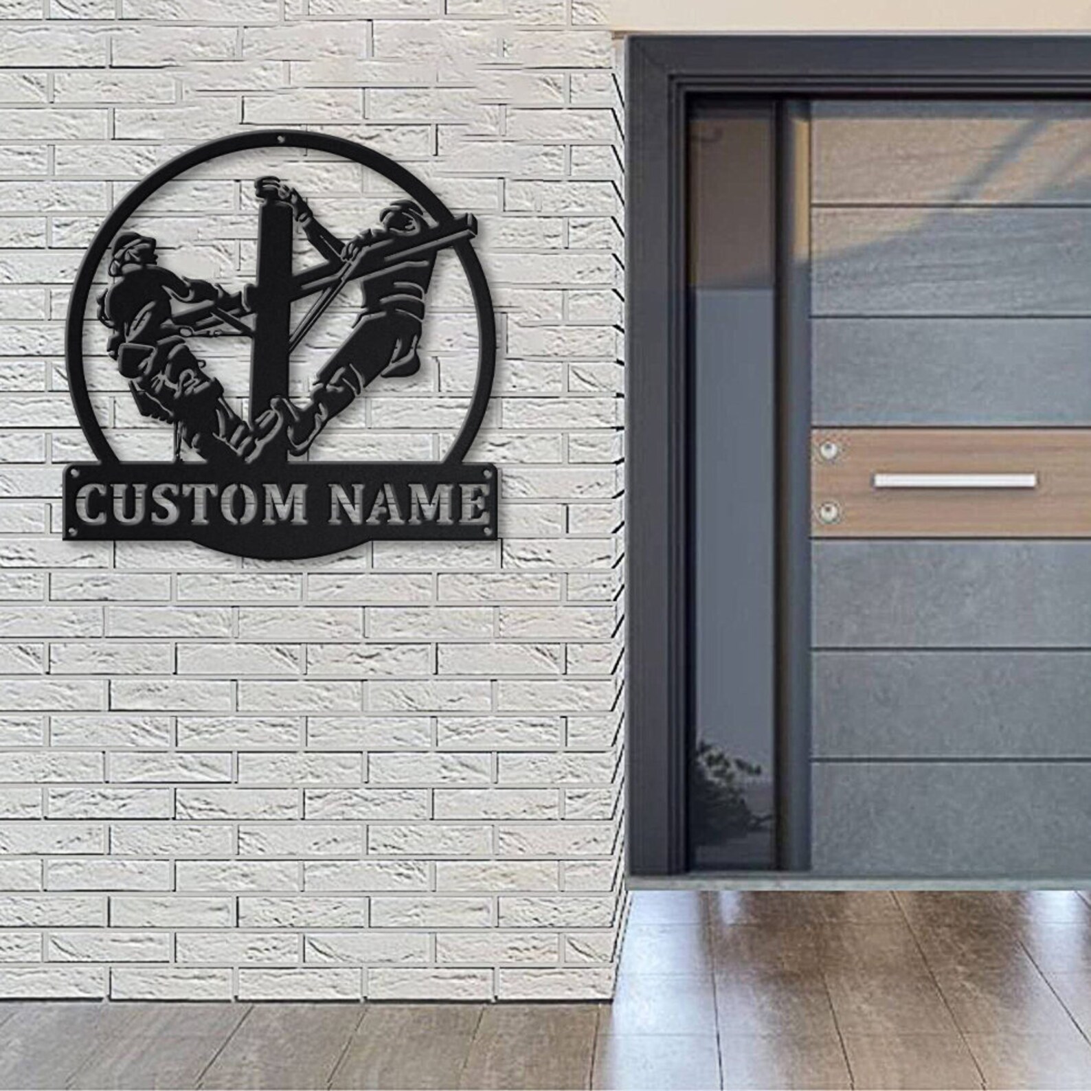 Custom Lineman Metal Sign with LED V1 – Neon Linework Decor