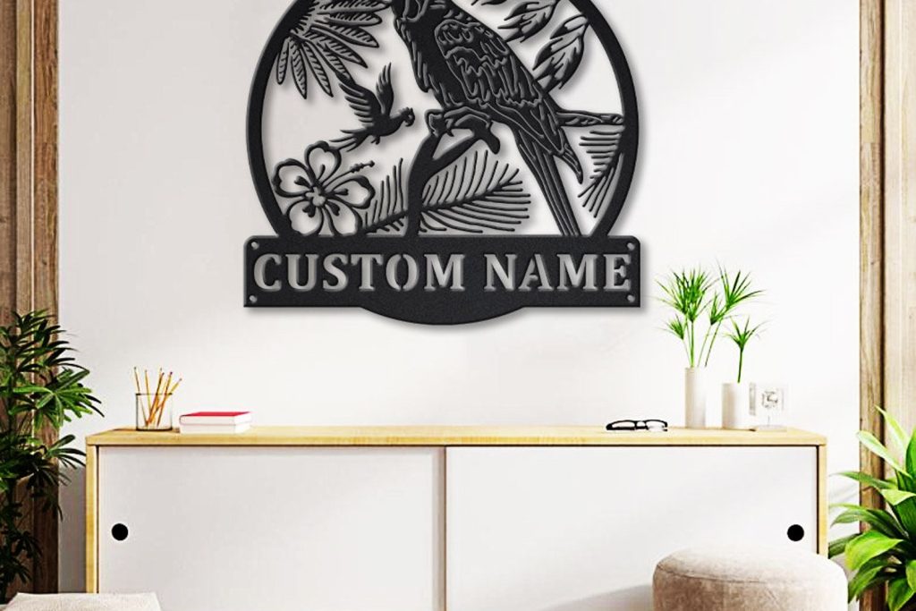 Custom Macaw Bird Monogram Metal Sign for Decor