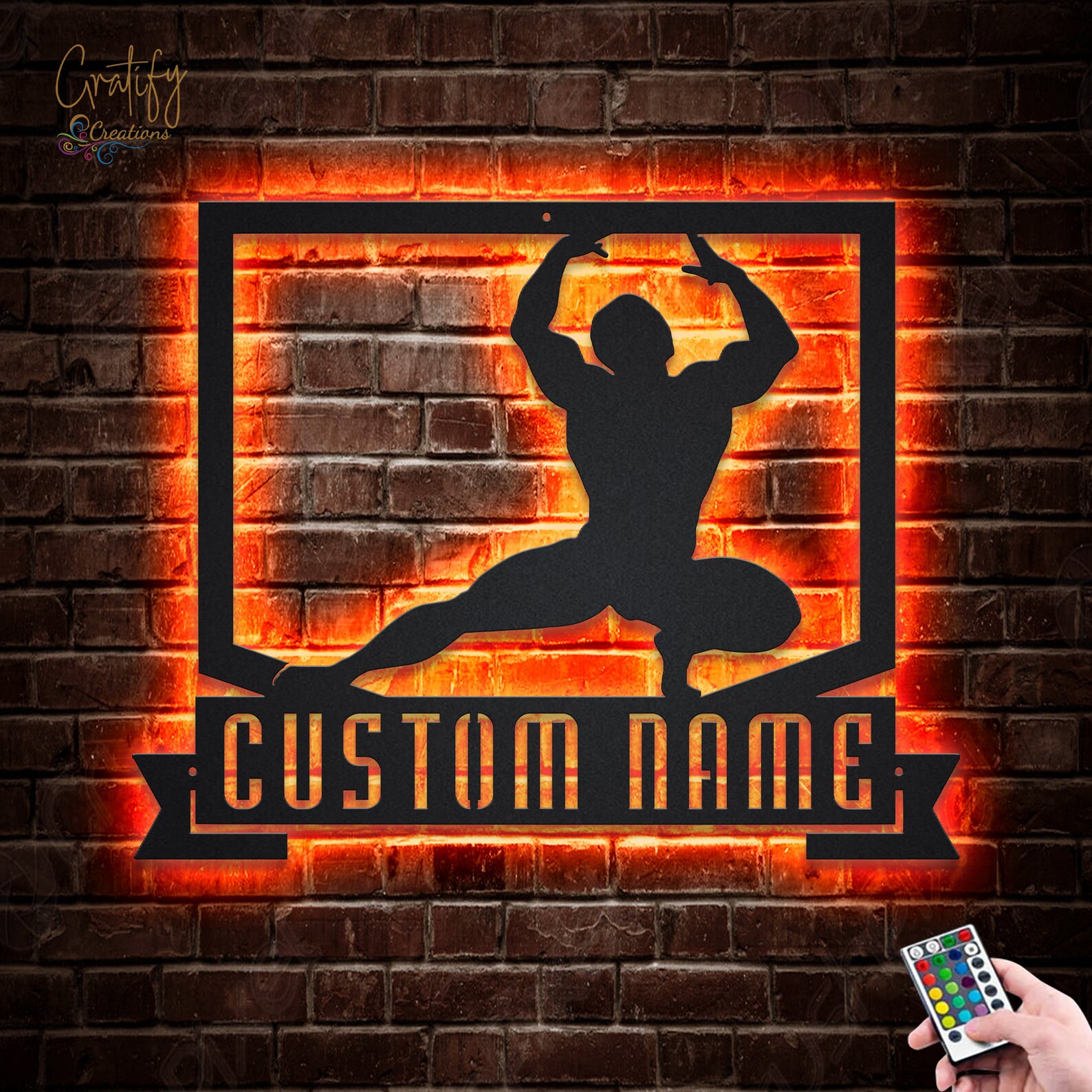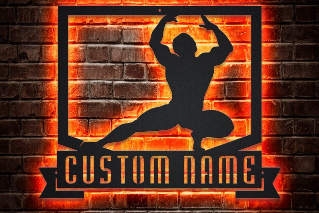 Be the first to review “Custom Male Bodybuilder Metal Sign with LED V5 – Gym Decor”