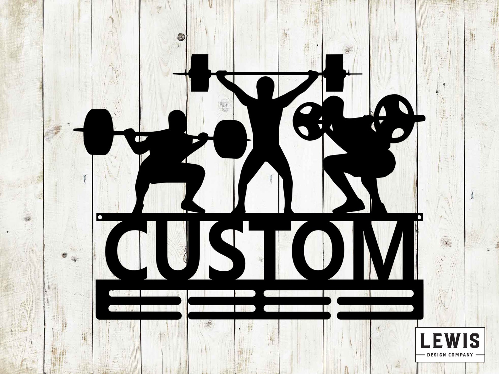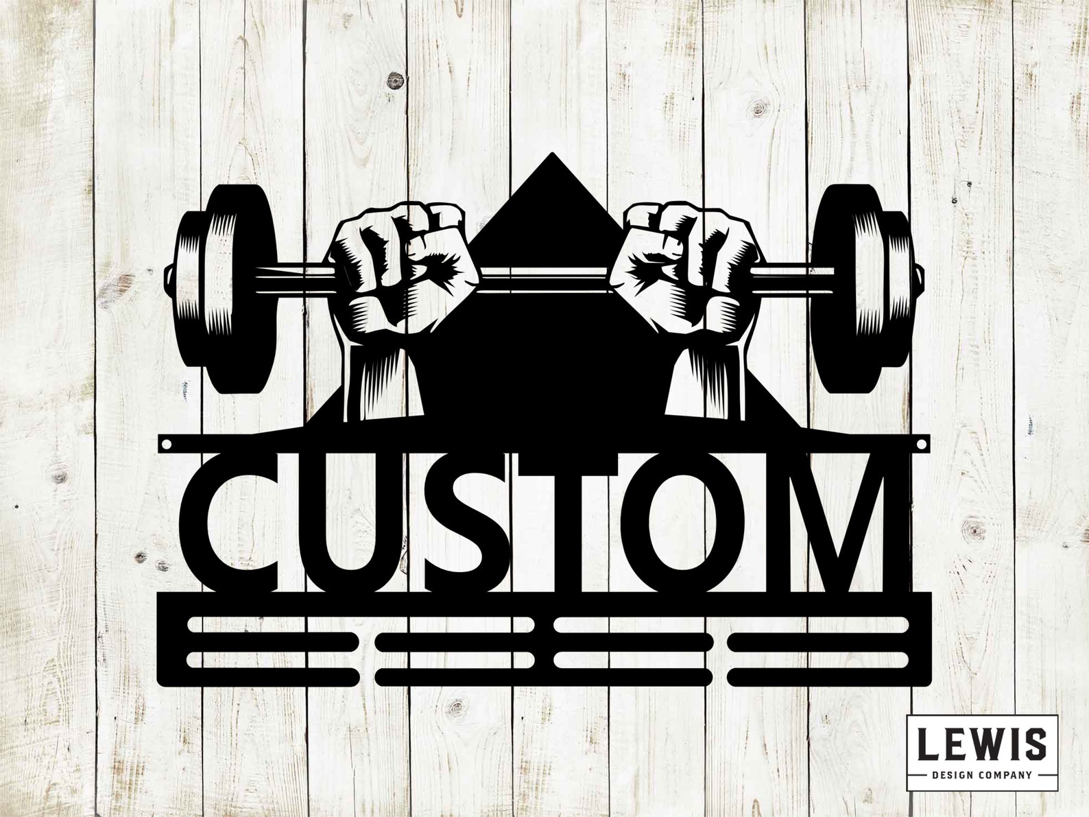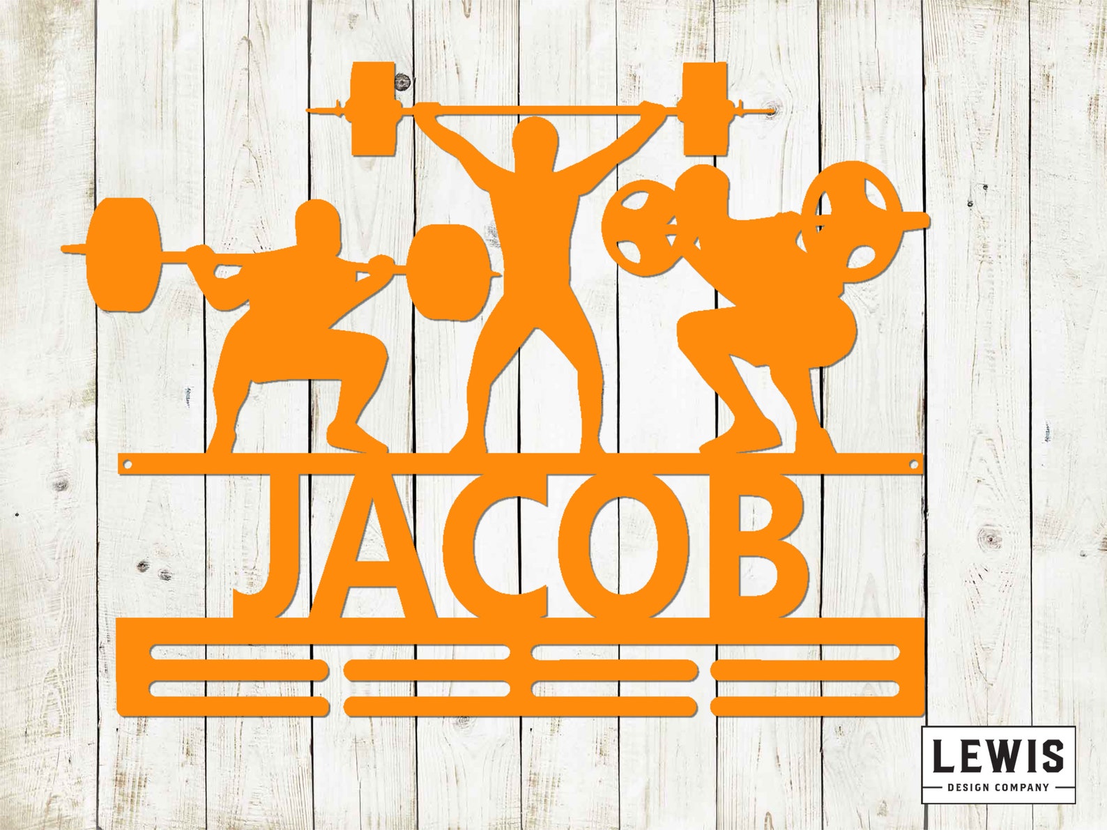 Custom Male Weightlifting Medal Hanger Metal Sign – Monogram
