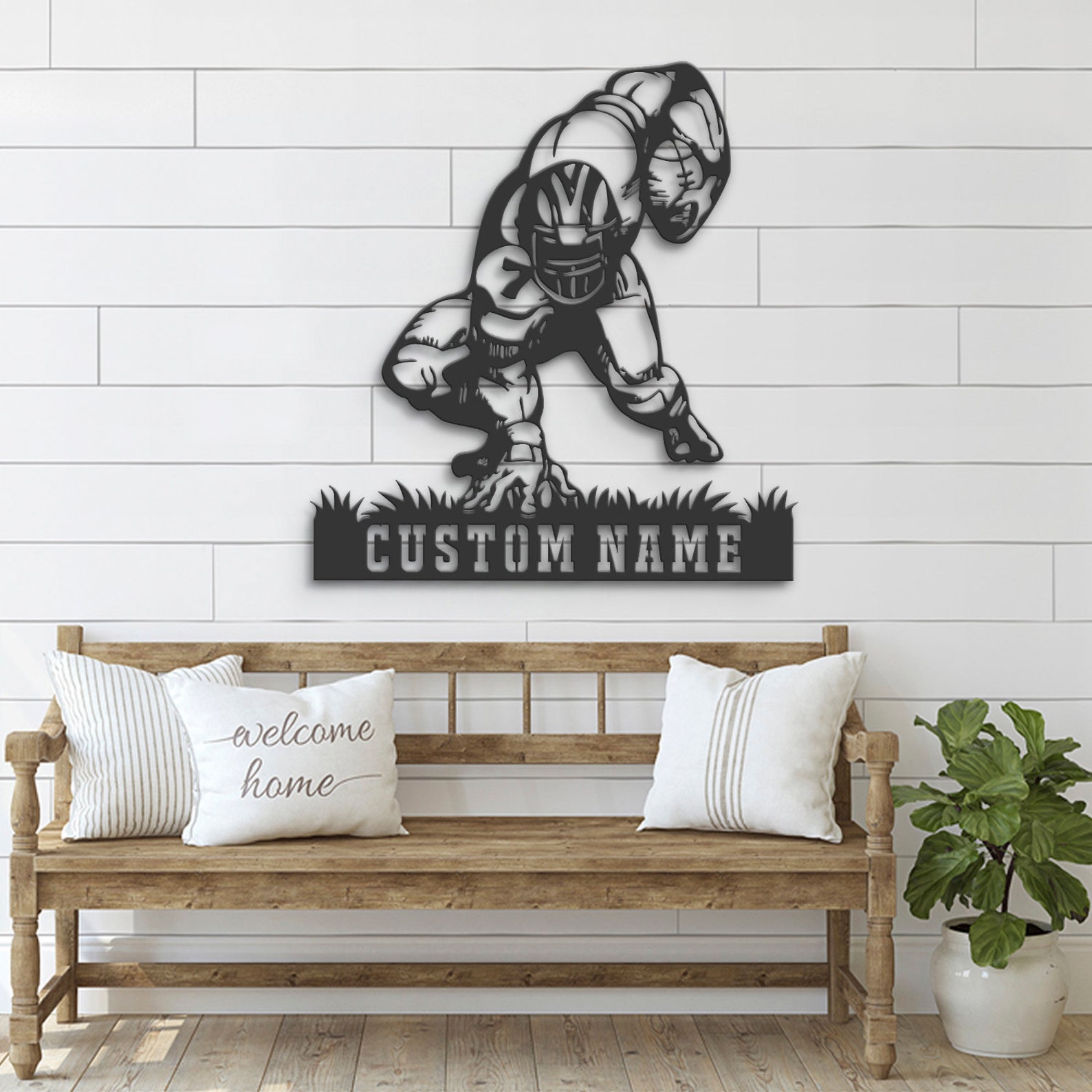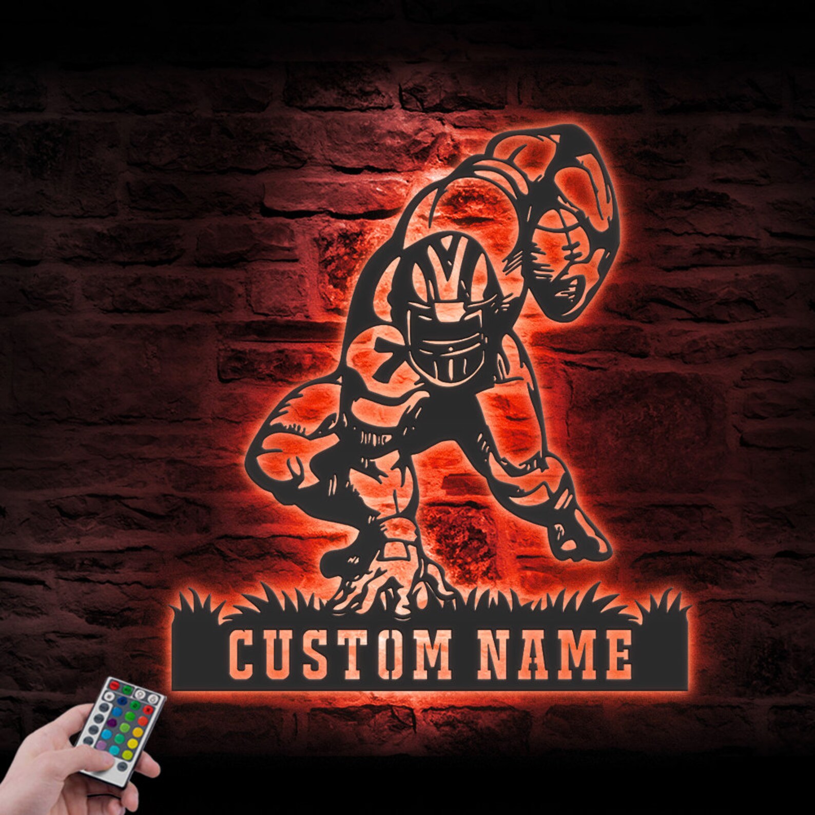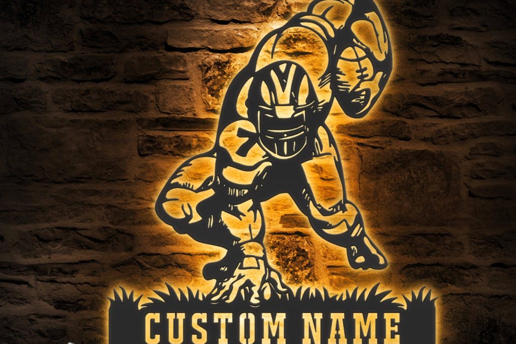 Custom Man Football Metal Art with LED Light