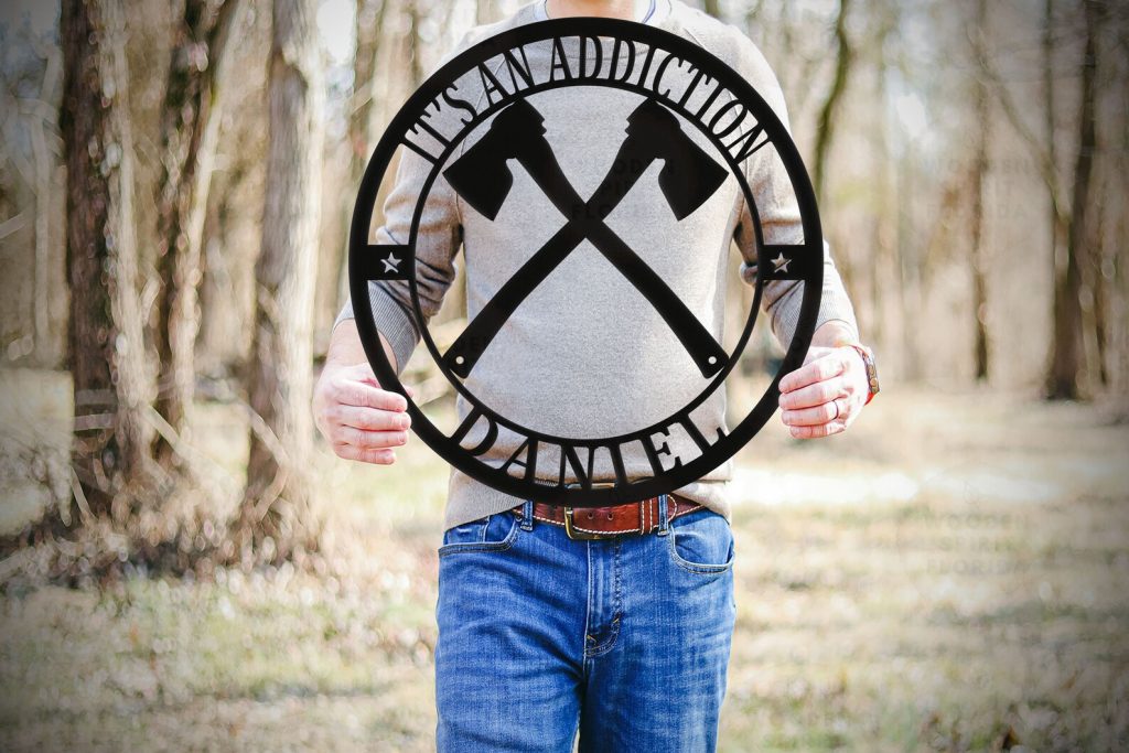 Custom Metal Axe Sign – Personalized Forester Woodworking Wall Art, Unique Decor Gift