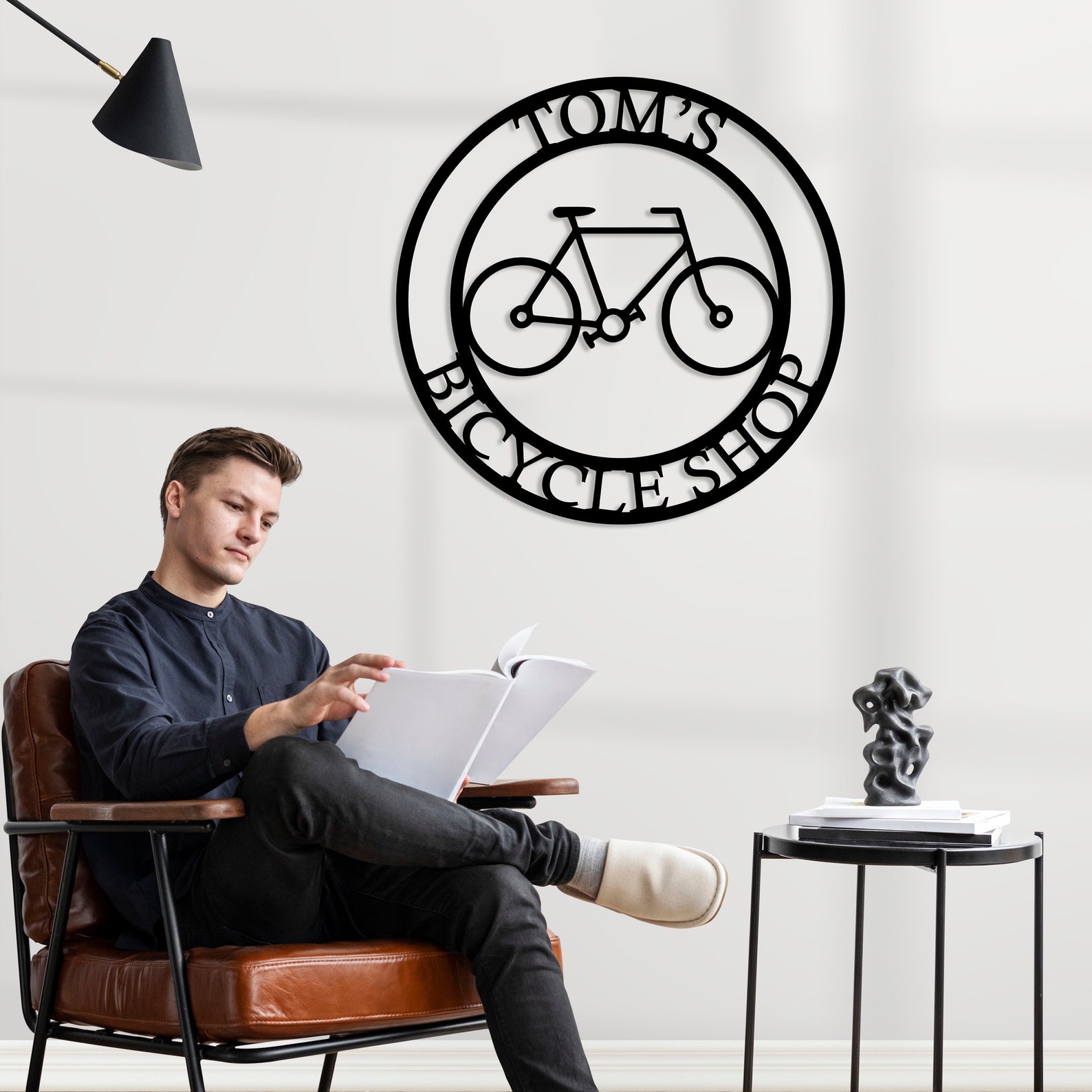 Custom Metal Bike Sign, Personalized Name Sign, Cyclist Decor, Custom Shop Signboard Sign, Gift for Bike Lovers, Garage Sign, Outdoor Decor