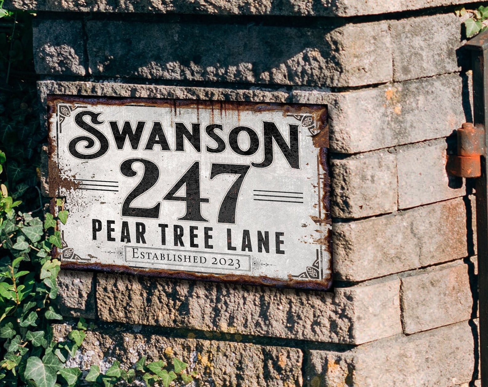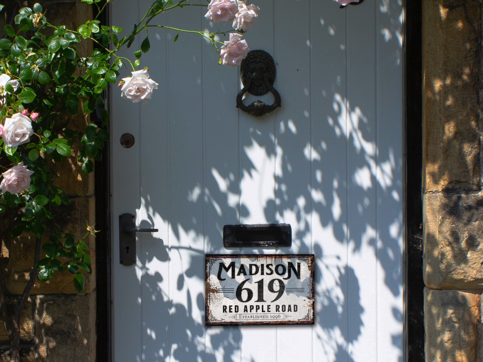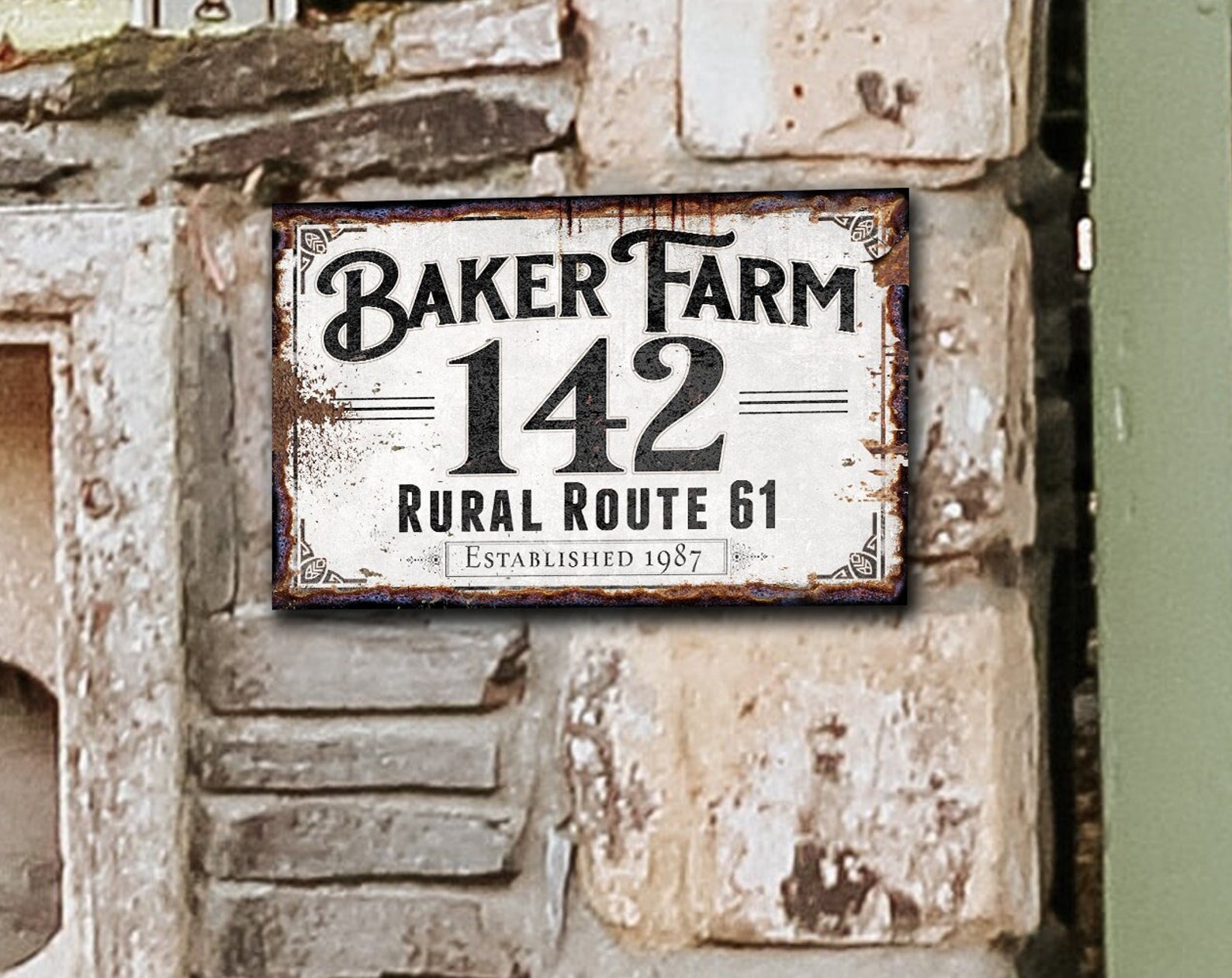 This personalized Home Address and Family Name sign offers a rustic farmhouse look and feel. I will customize this farmhouse family name address sign by integrating your name and Established Year into the vintage art you see.