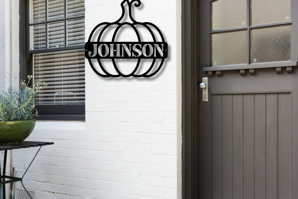 Our Personalized Metal circle pumpkin last name signs are the perfect fall decor.