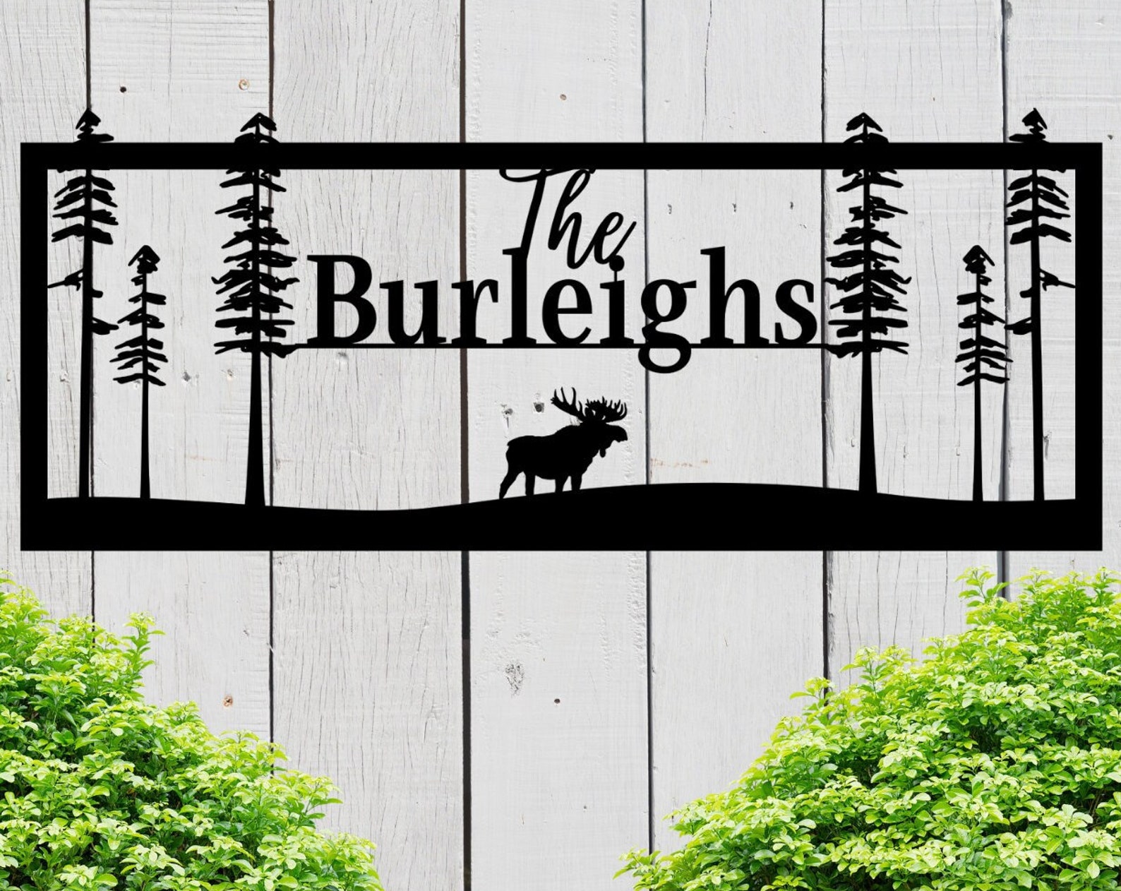 Celebrate family pride and a love for the great outdoors with our Custom Metal Sign. Expertly crafted to feature your last name alongside a majestic moose set against a wilderness backdrop, this unique sign captures the essence of nature9;s beauty and family unity. Perfect for cabins, lodges, or homes with a rustic charm, this personalized piece adds a touch of wilderness allure and personalized character to any space.