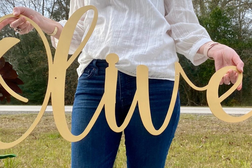 Custom Name Sign in beautiful script. Available in black or natural metal.