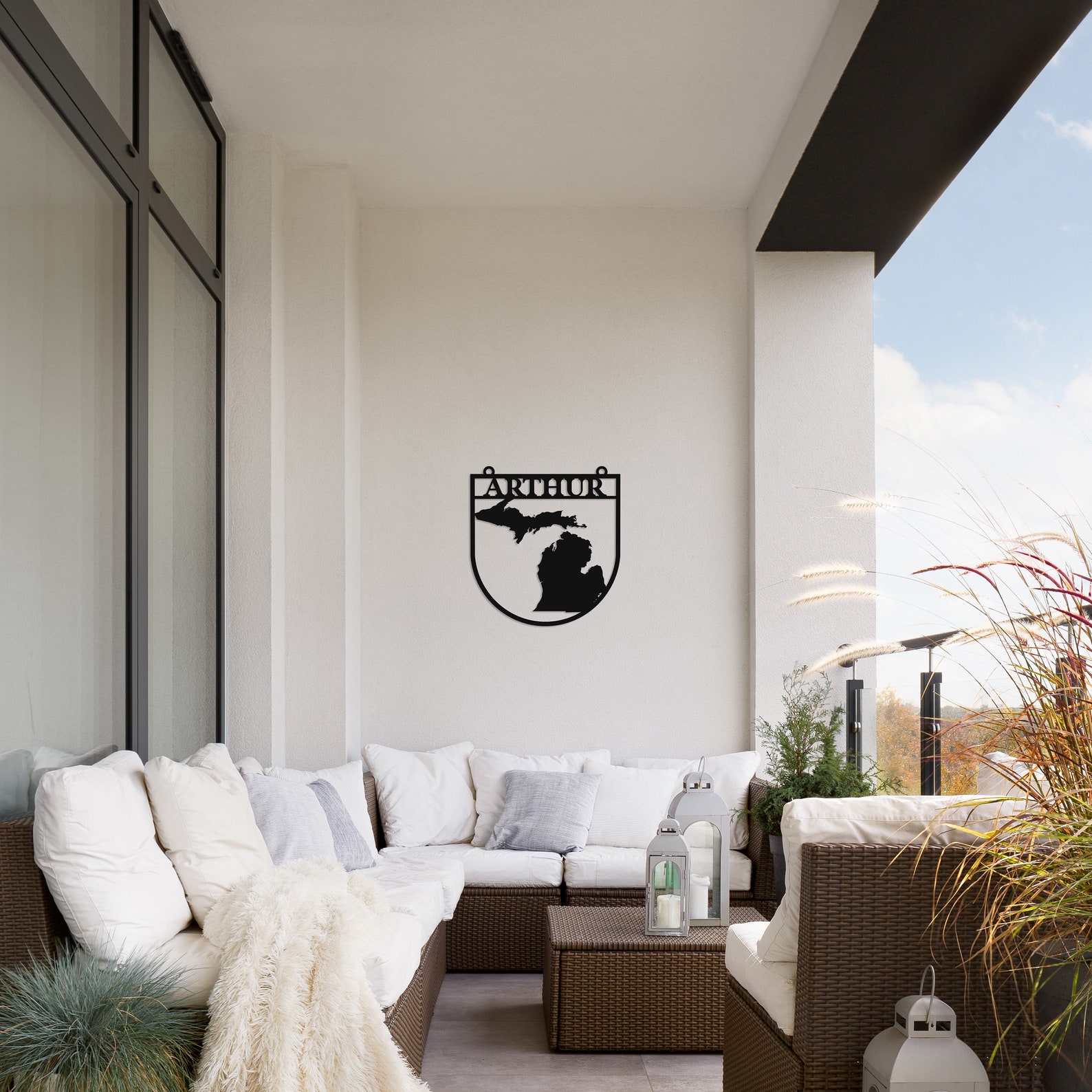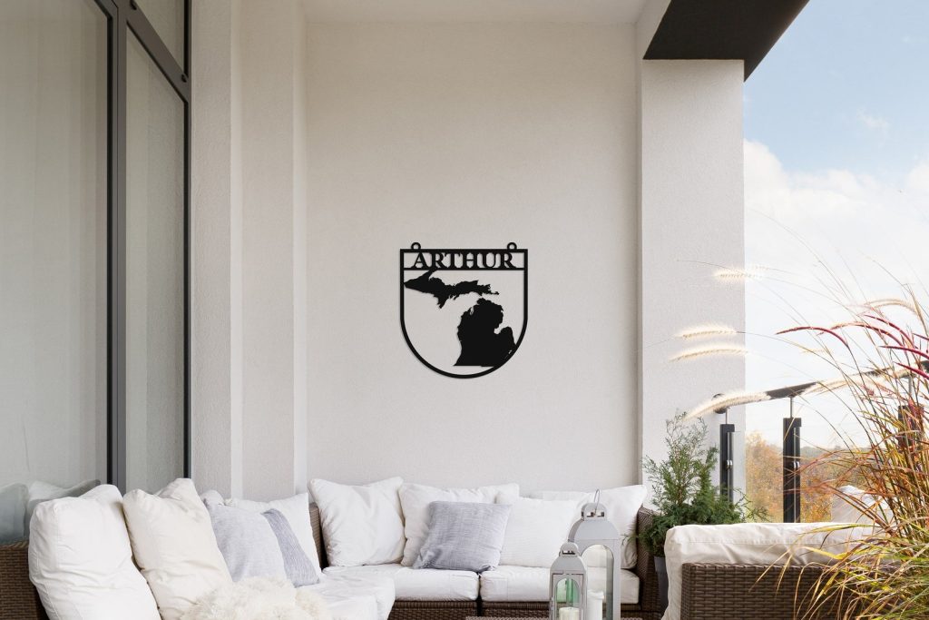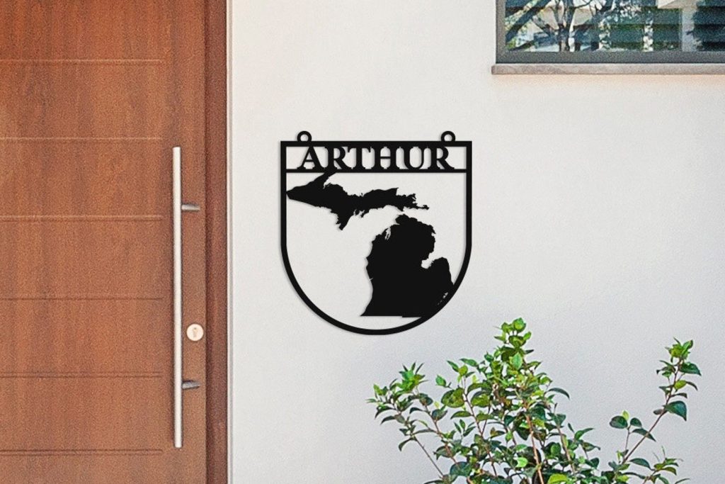 Featuring the iconic Michigan outline, our custom metal sign allows you to make a bold statement about your connection to the Wolverine State. Whether you9;re a long-time resident or a new arrival, this sign is a stylish addition to your Michigan home decor. Show your love for the United States, and specifically Michigan, with a customized Michigan flag sign that9;s perfect for family gift ideas. Celebrate your Michigan state pride with this family last name sign that combines style and sentiment. It9;s time to transform your outside decorations with this eptional piece of Michigan home decor.