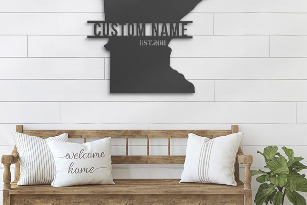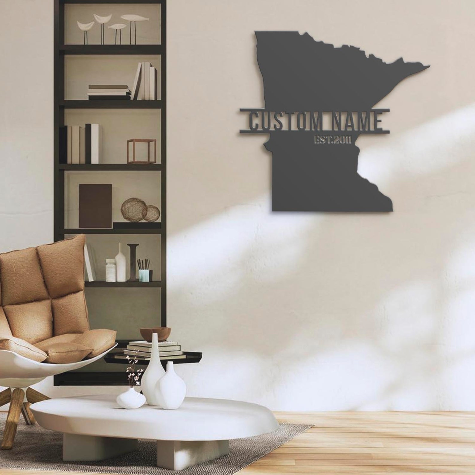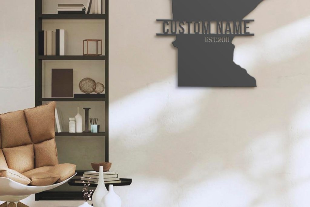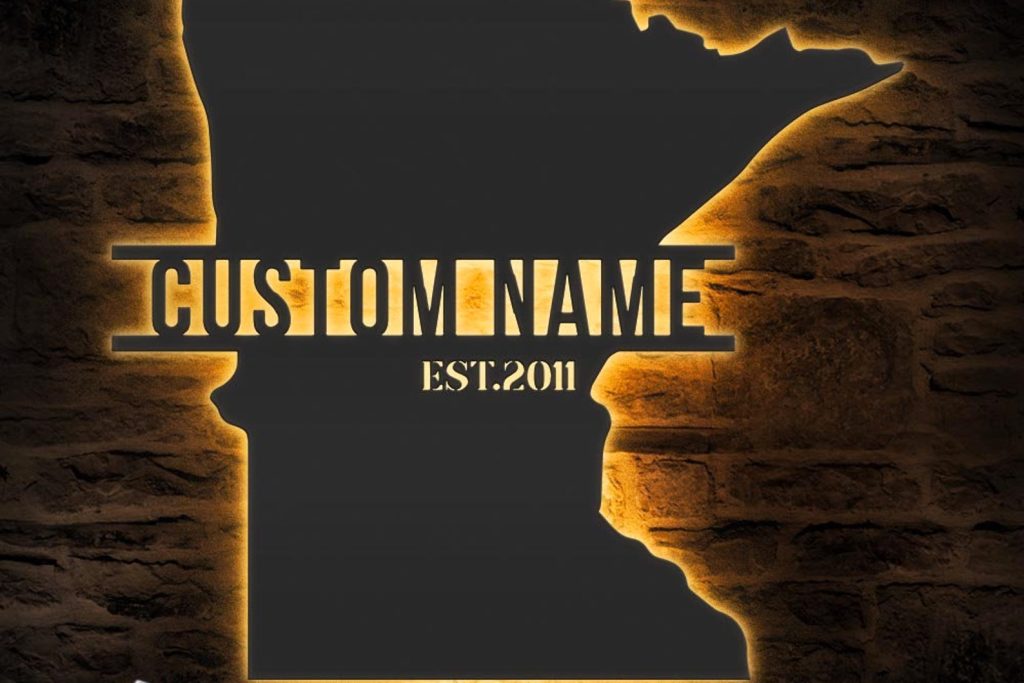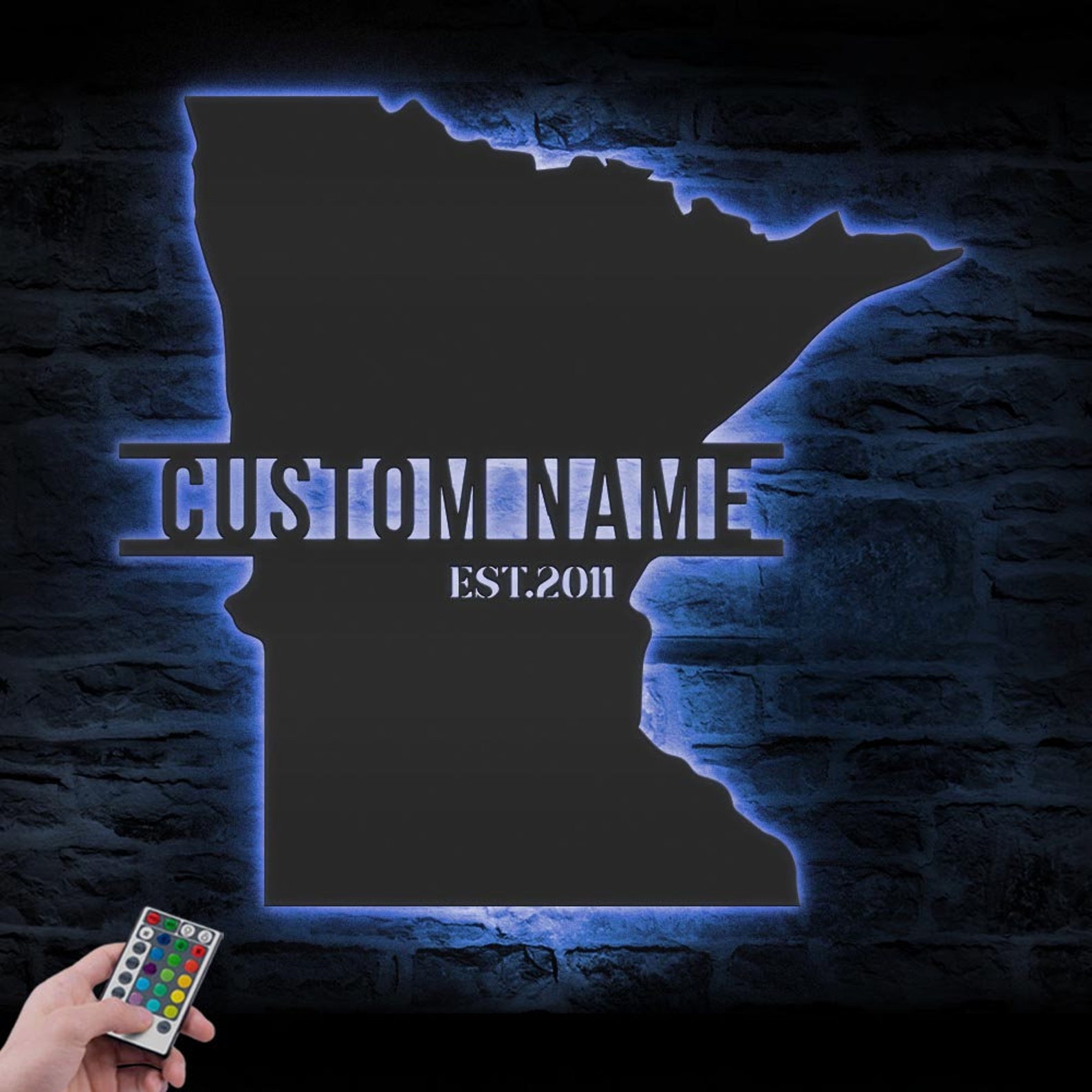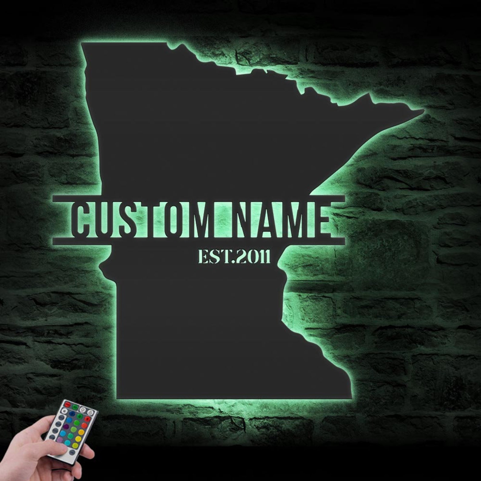 Be the first to review “Custom Minnesota Map Metal Wall Art with LED Light, Personalized Name Sign”