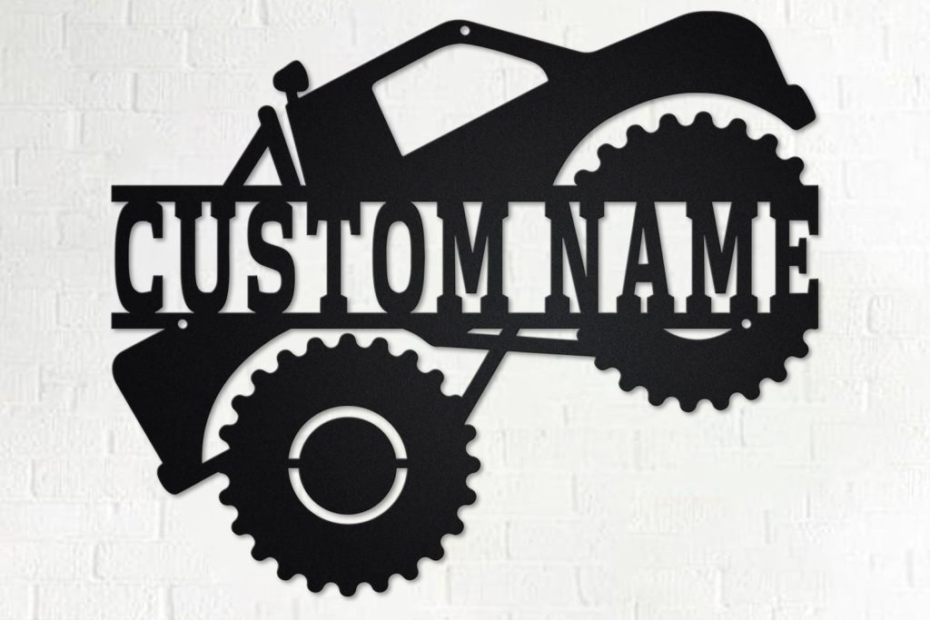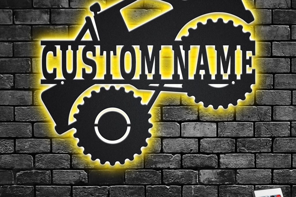 Custom Monster Truck Metal Wall Art with LED Light, Personalized Name Sign