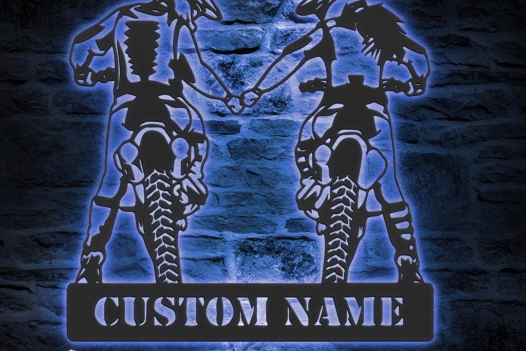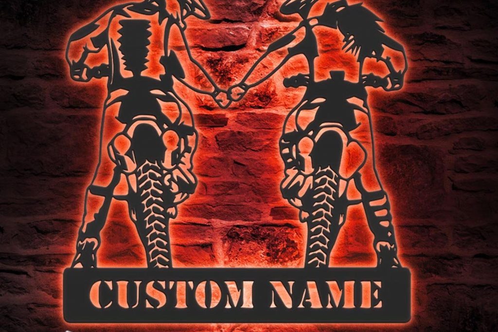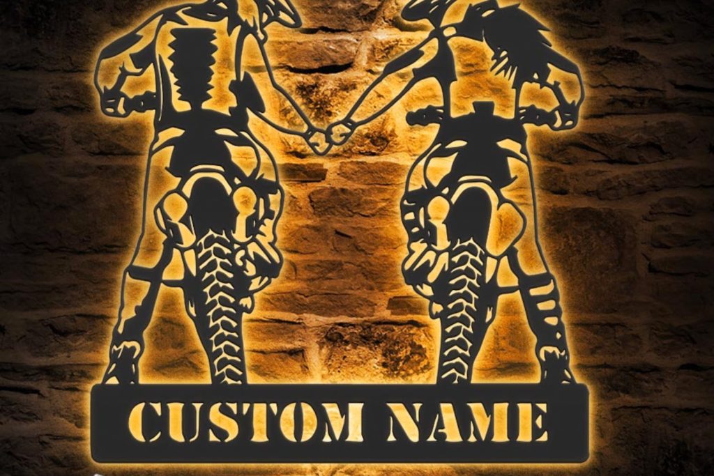Be the first to review “Custom Motocross Couple Metal Art with LED Light”