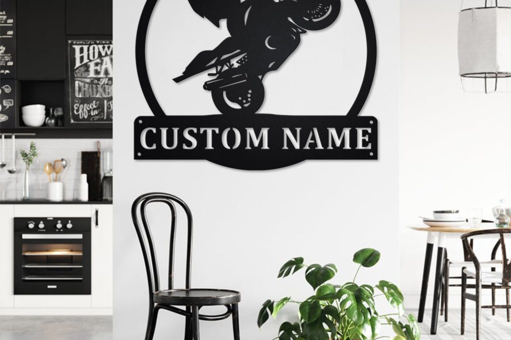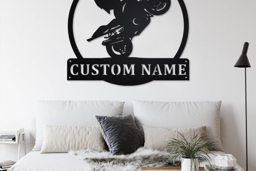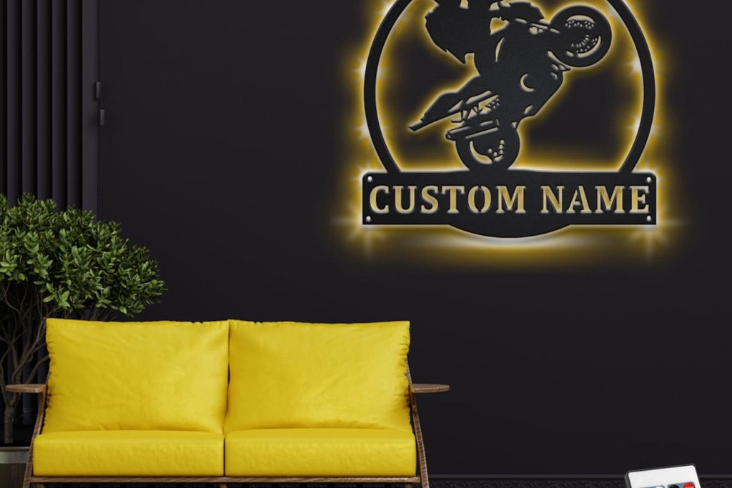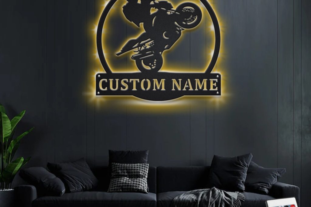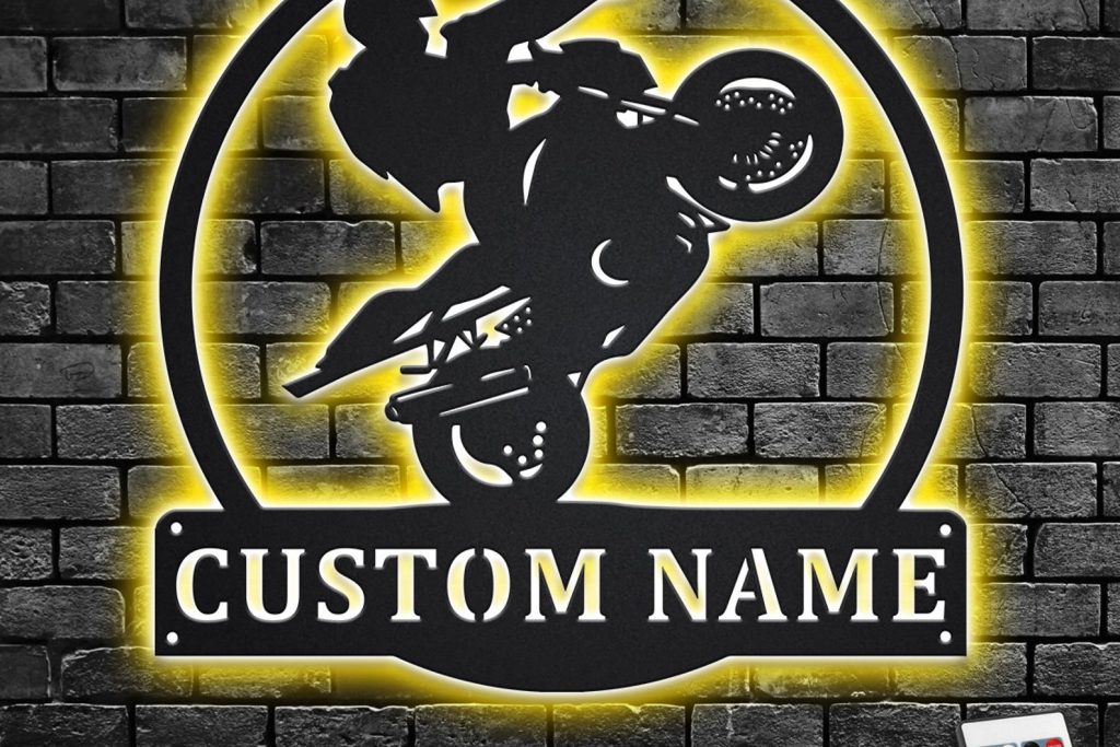 Custom Motocross Motorcycle Metal Wall Art – LED Light, Personalized Sign