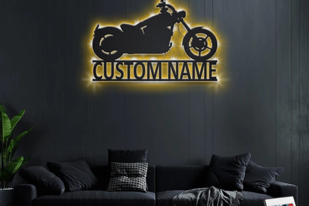Custom Motorcycle Metal Sign with LED – Biker Room Decor