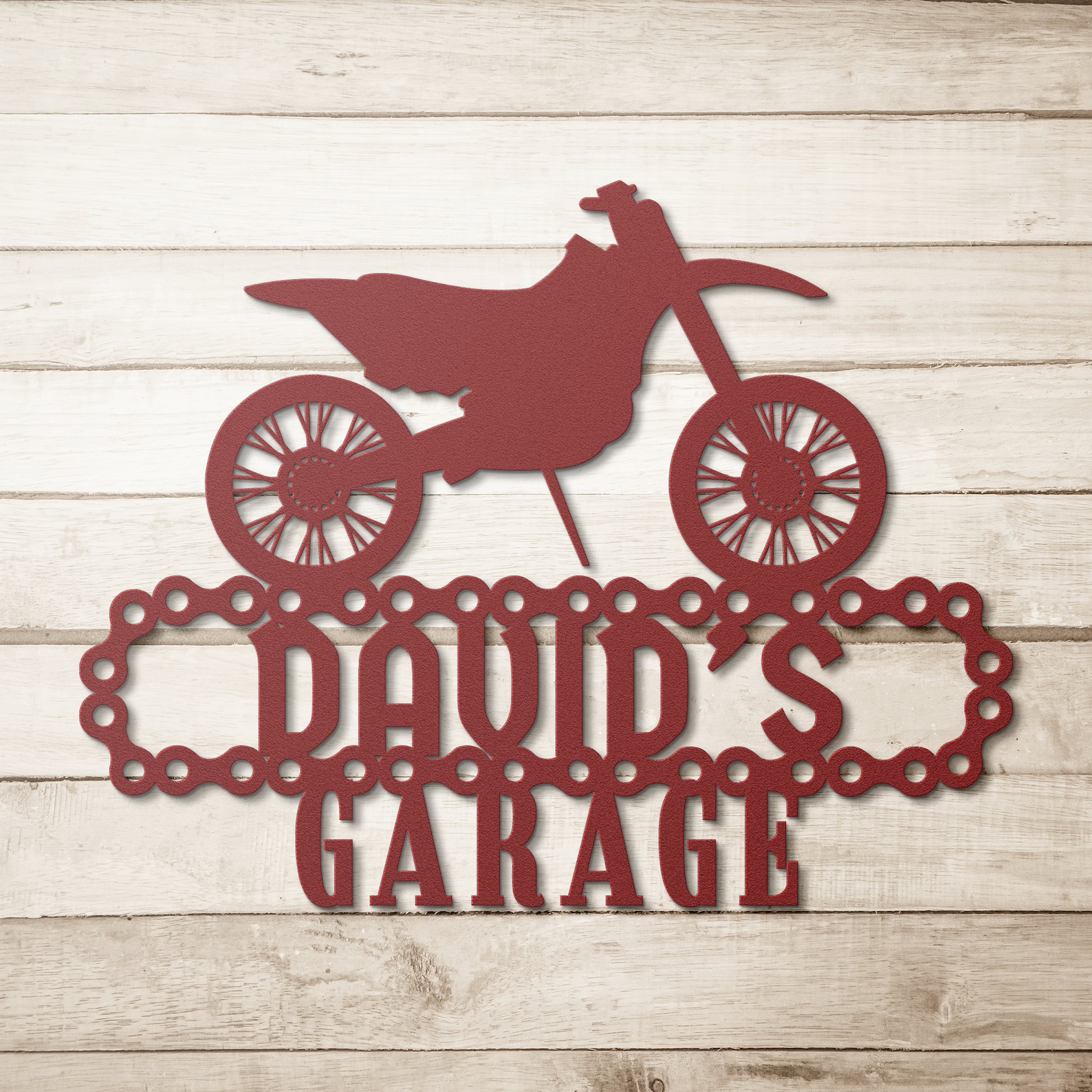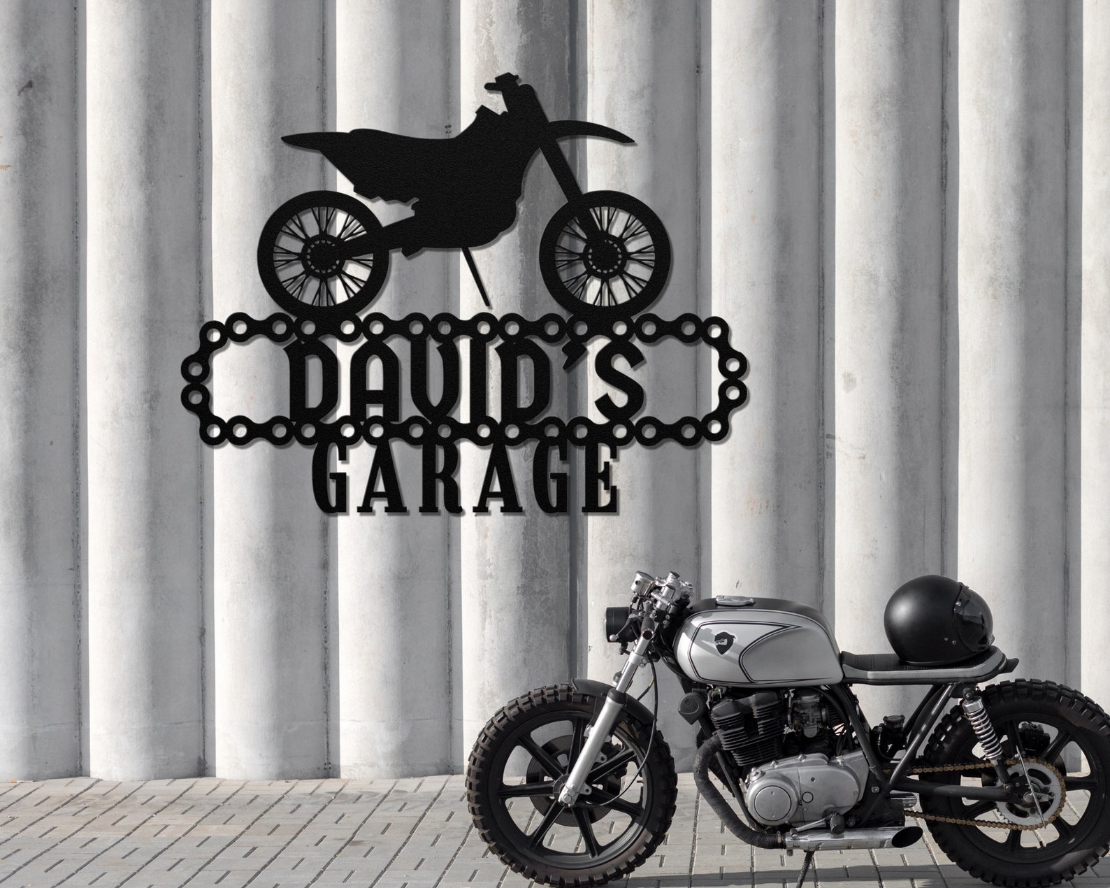 Add a unique touch to your garage or workshop with this Custom Motorcycle Metal Sign. This personalized biker name sign is the perfect addition to any Harley enthusiast9;s space, making it a great housewarming gift. Constructed with high-quality metal, this durable sign is designed to last for years to come. Showcase your love for motorcycles and personalize your space with this one-of-a-kind garage sign.