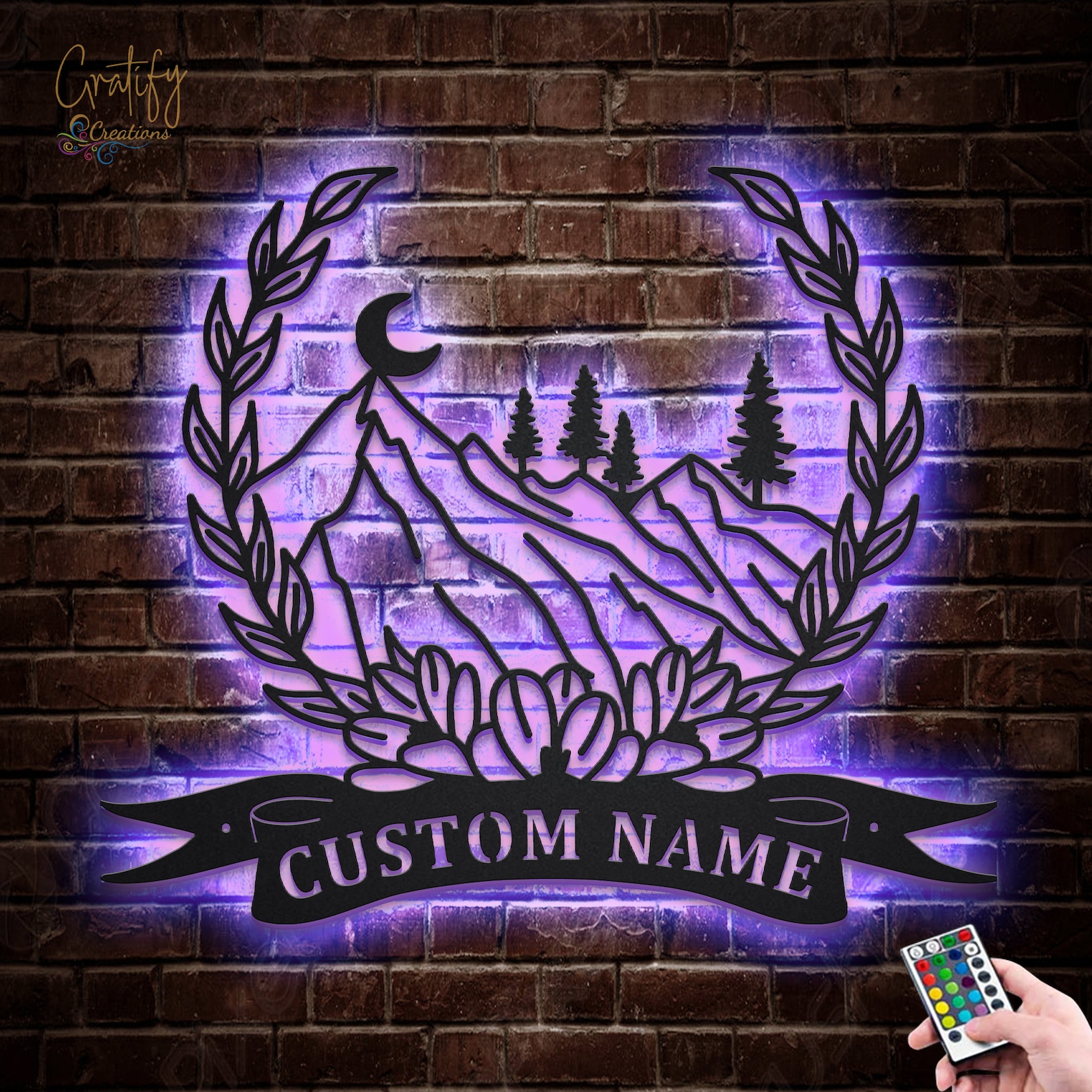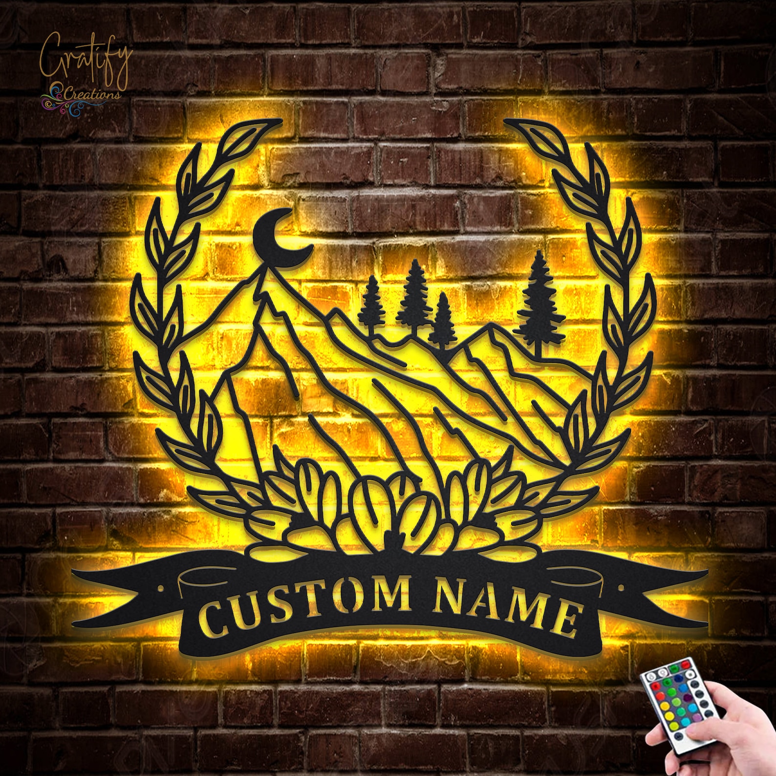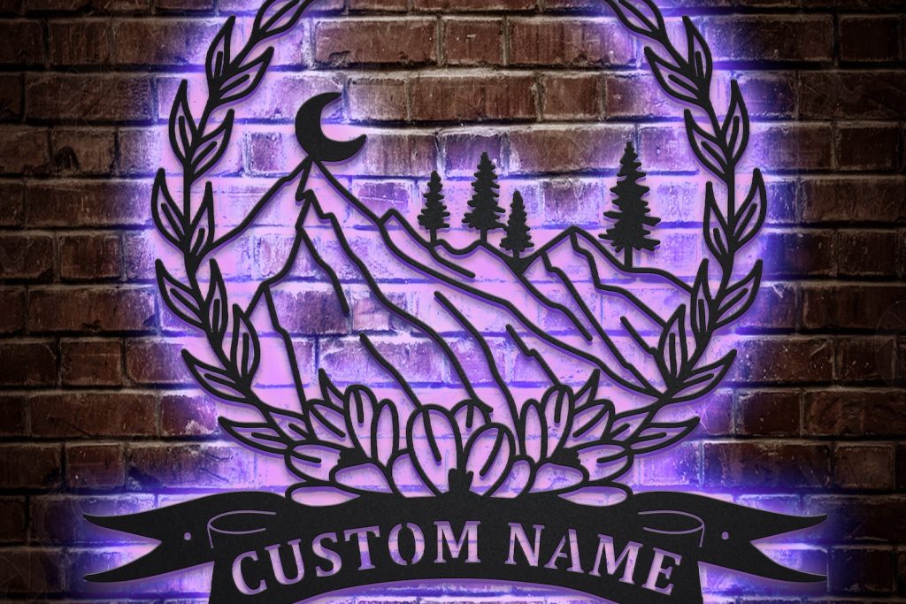 Be the first to review “Custom Mountain & Flower Metal Sign with LED V1 – Wall Decor”