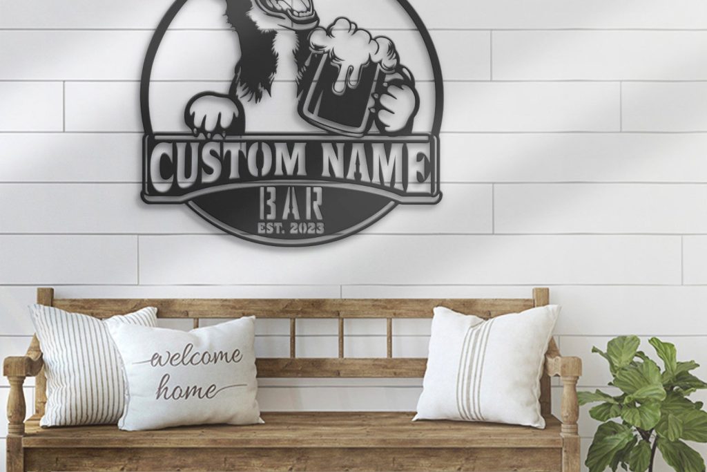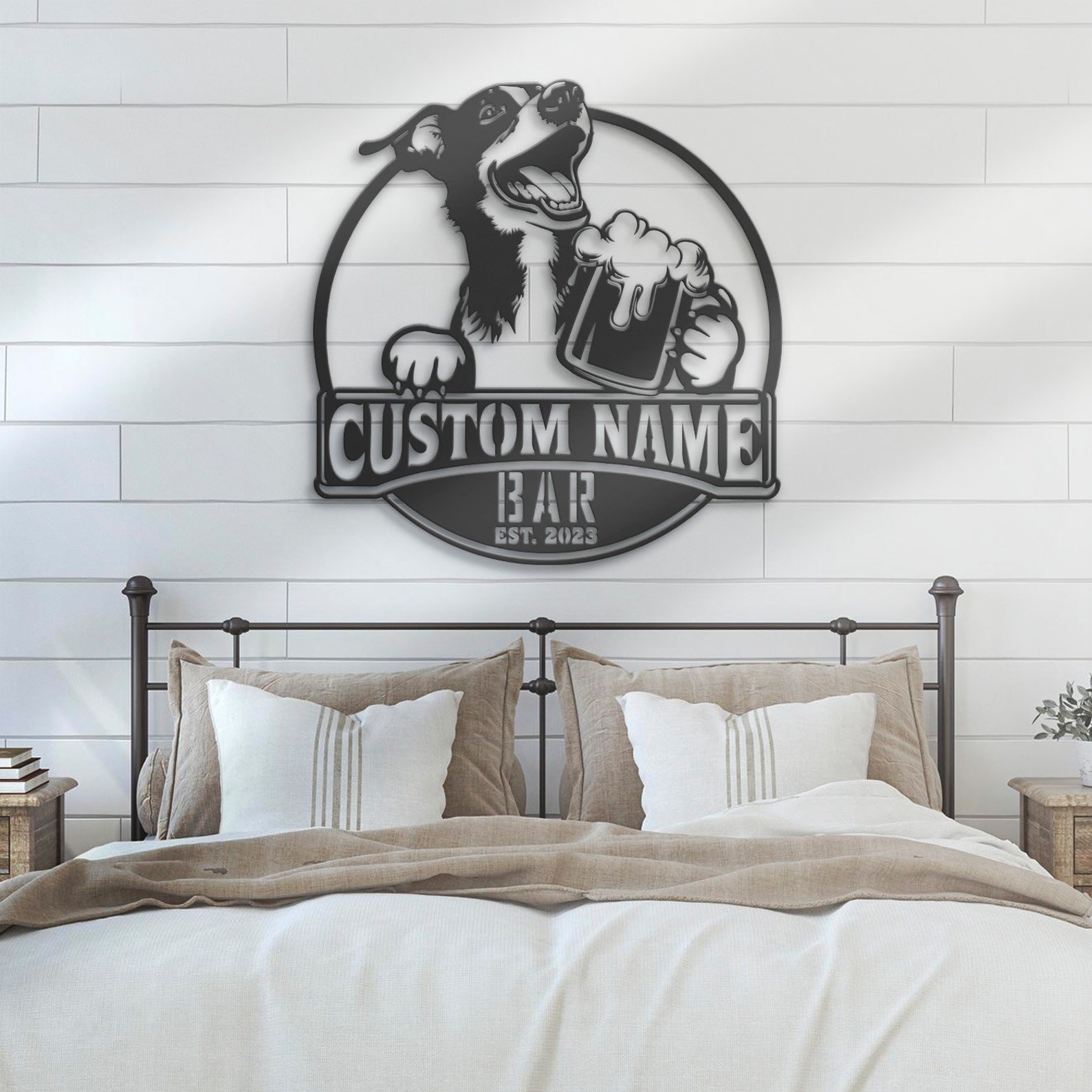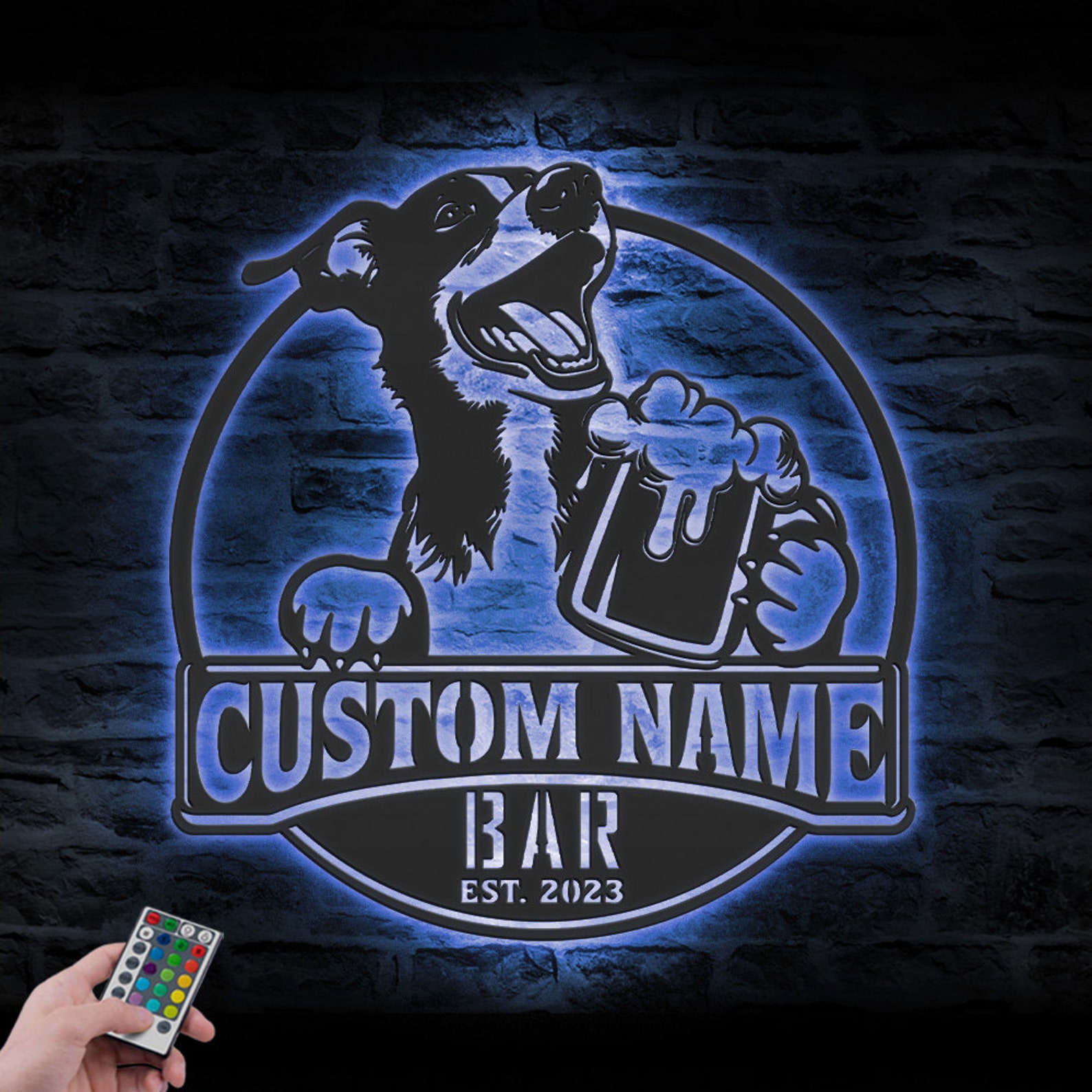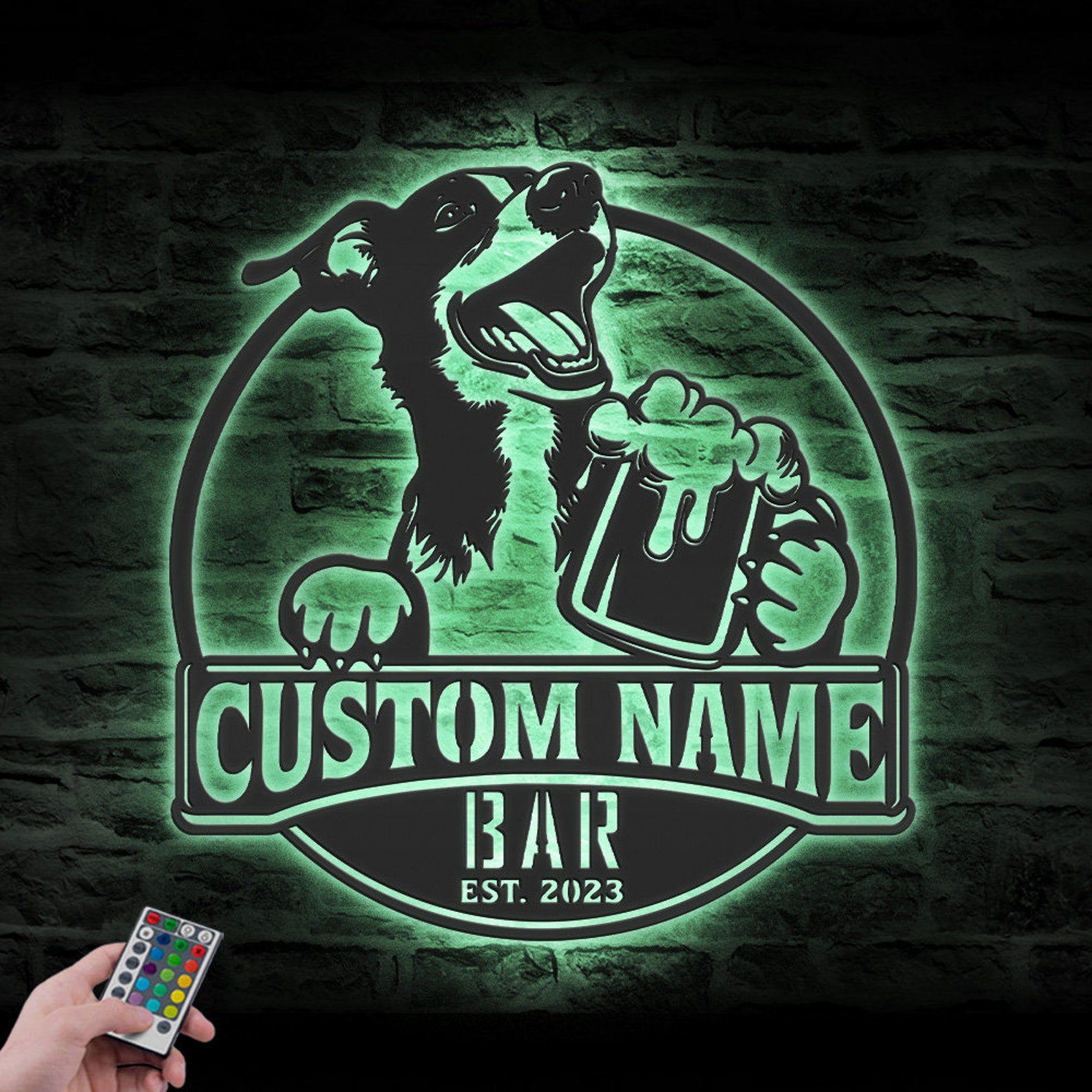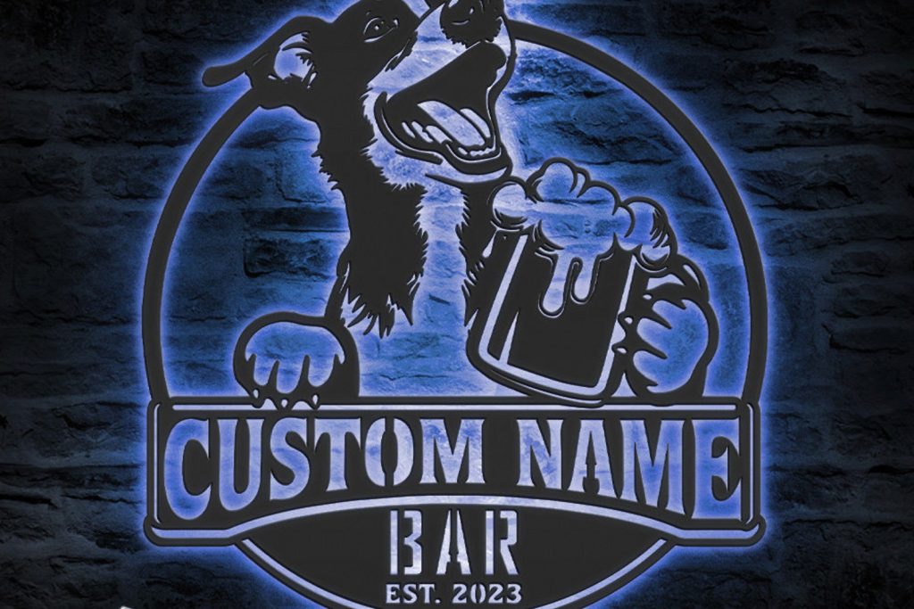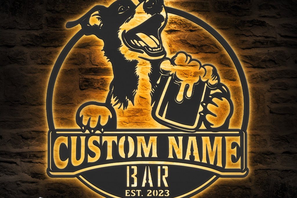 Custom New Zealand Heading Dog Beer Pub Metal Wall Art – LED Light, Personalized Sign