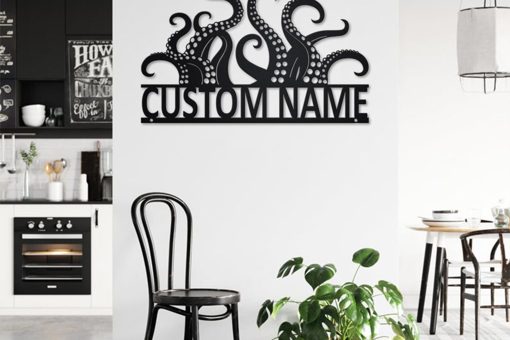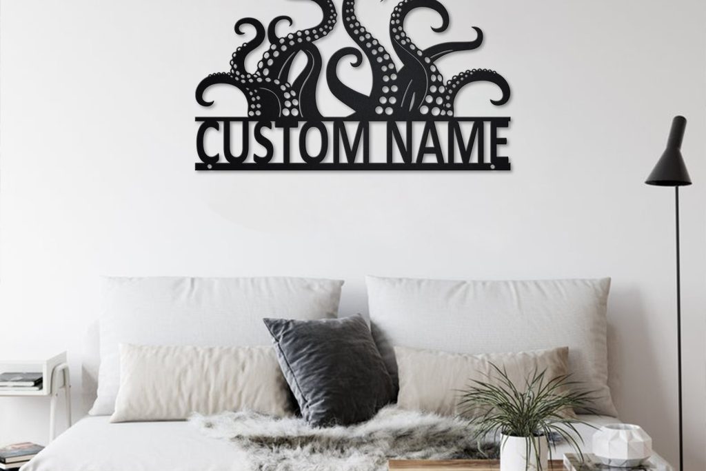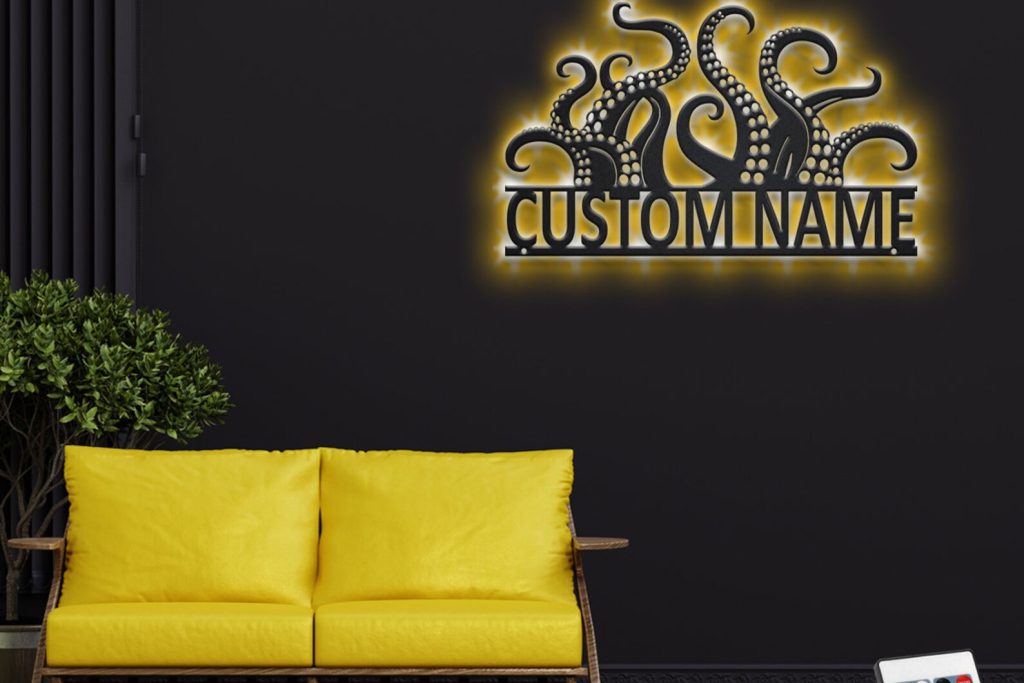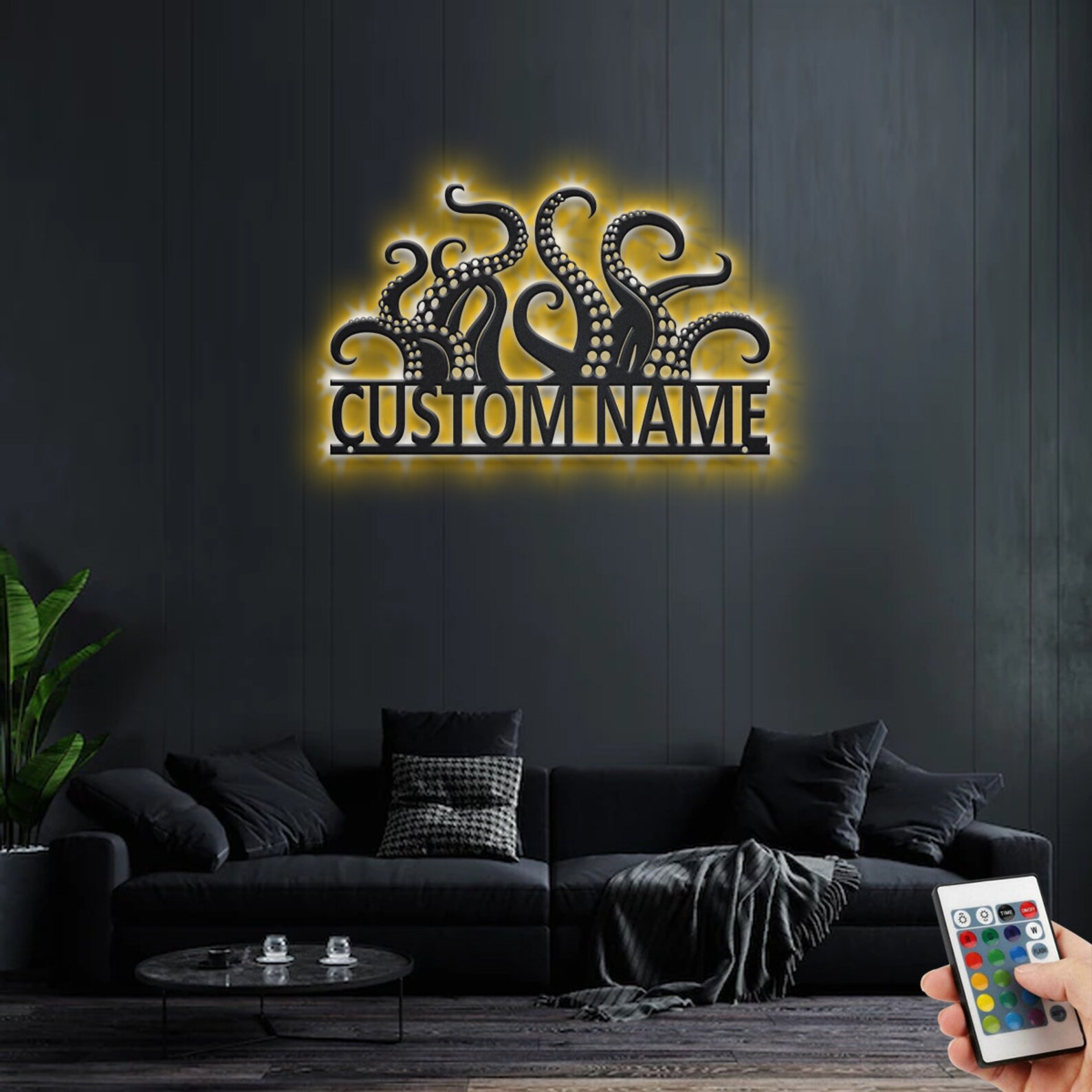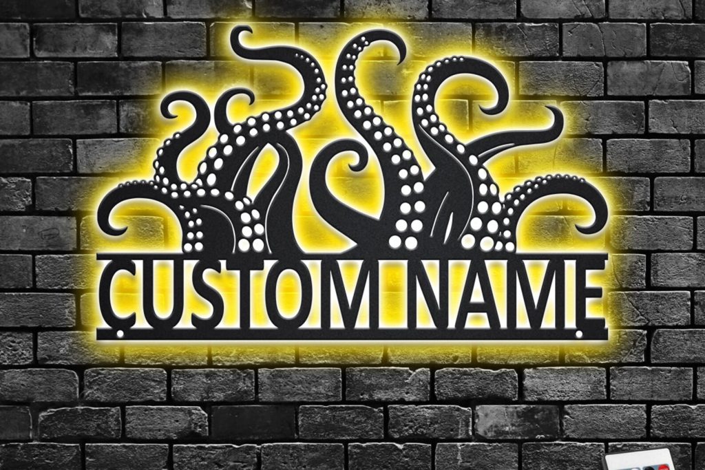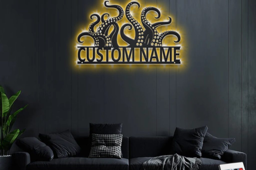 Custom Octopus Metal Sign with LED – Tentacles Room Decor