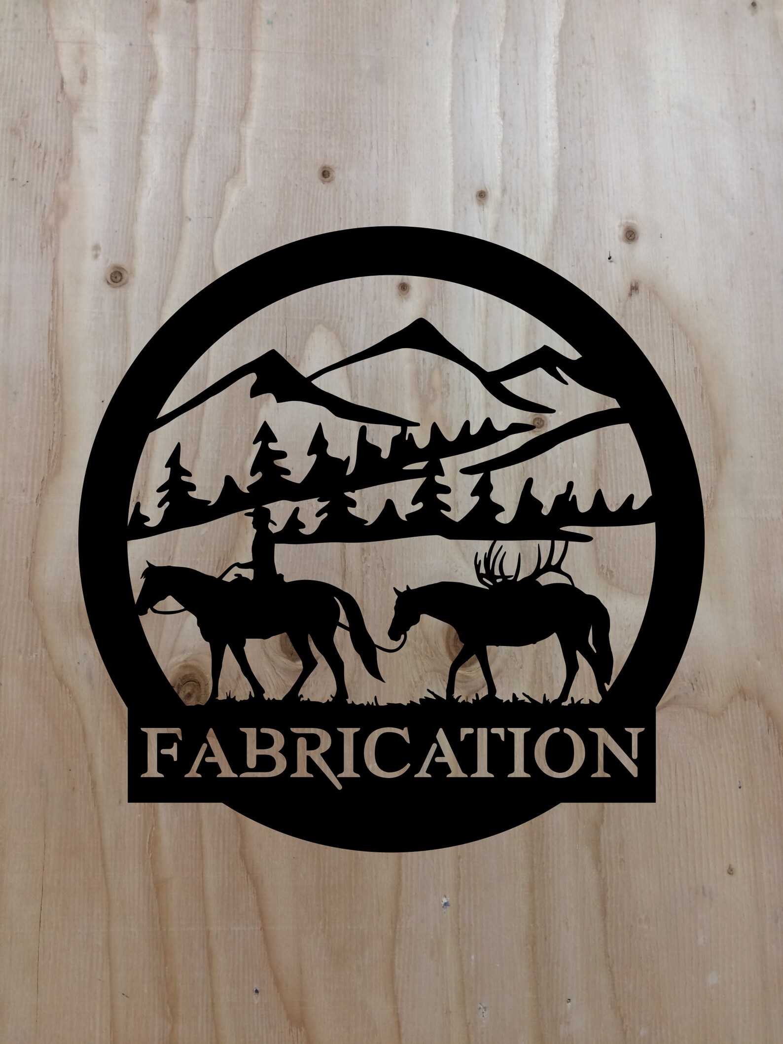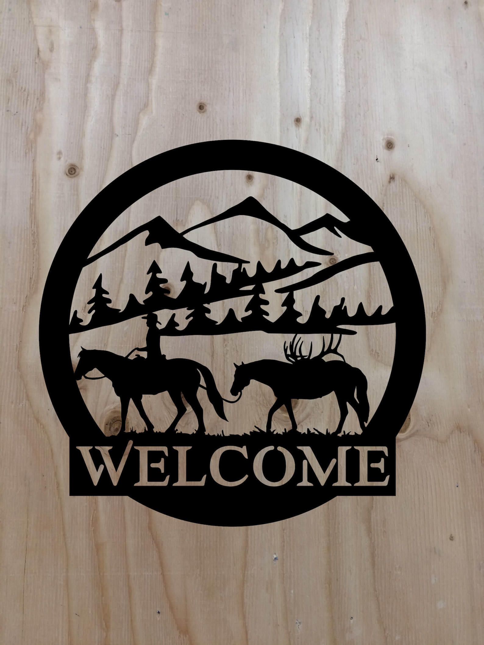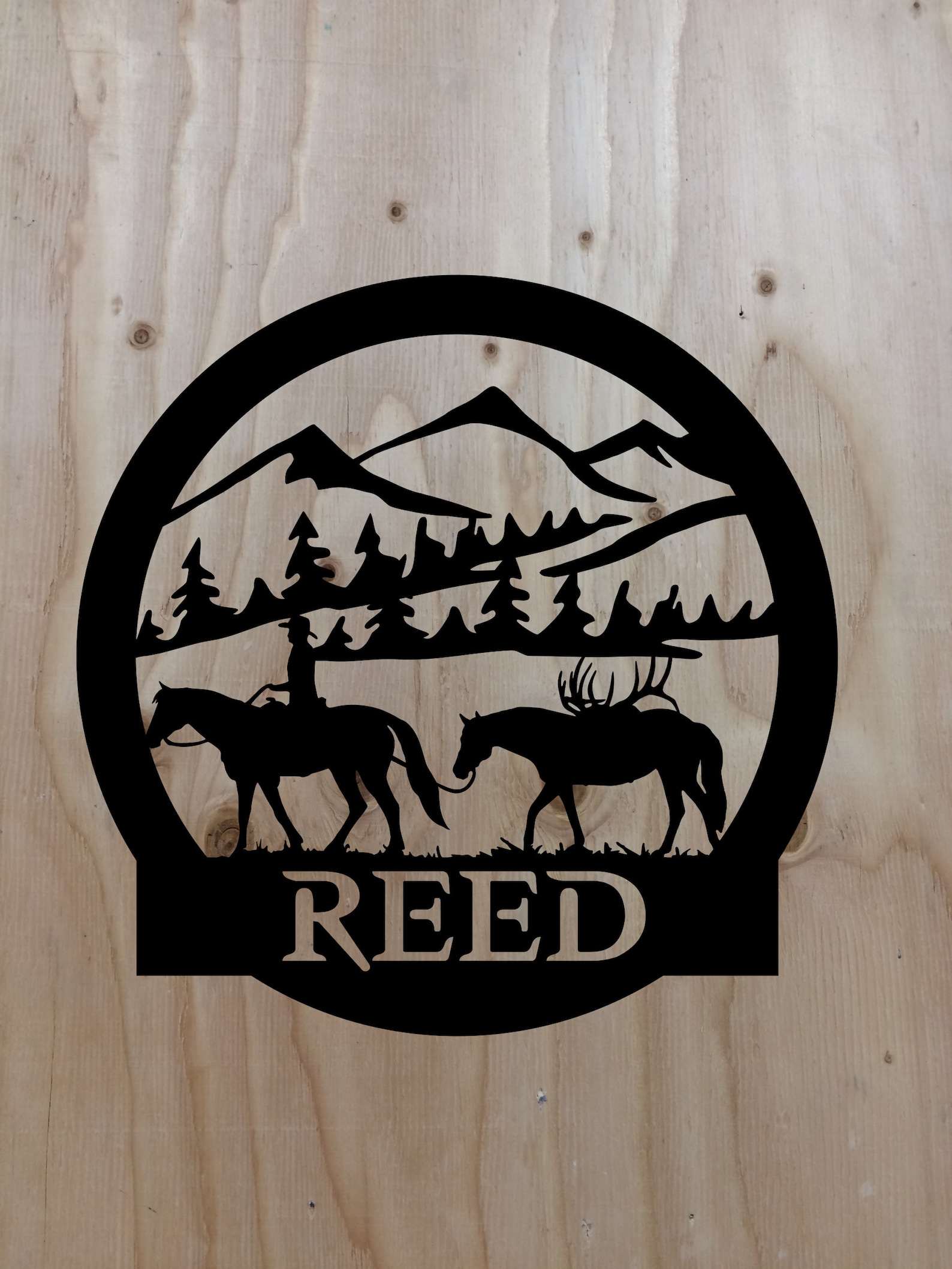 Made in the USA from 16 gauge steel. CNC plasma cut and hand finished. Powder coat for durability. More designs at our facebook page @rmfsigns Reed Machine and Fabrication LLC. Custom names and sizes available. Cowboy, Hunting, Elk, Pack Horse, Wildlife, Western wall decor.