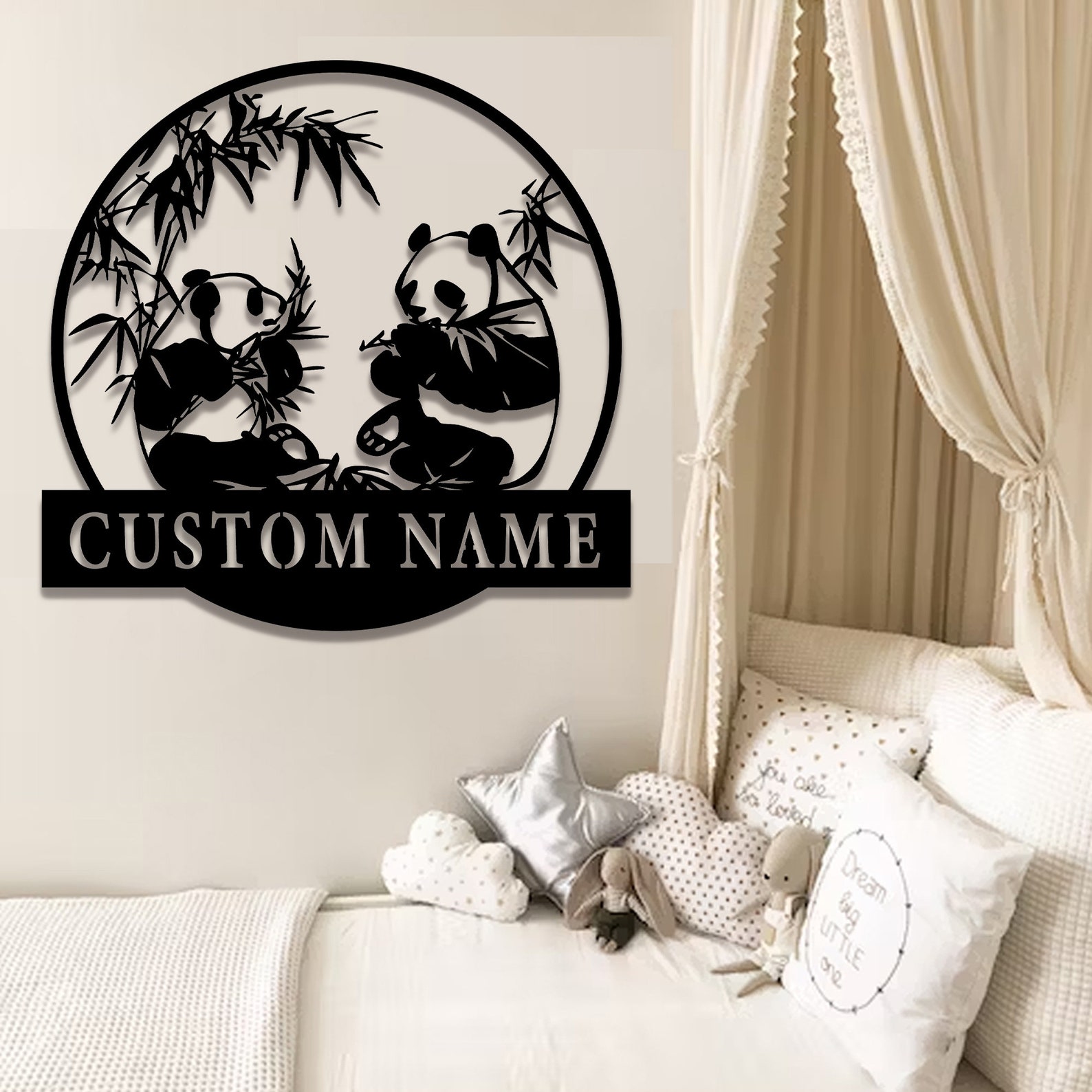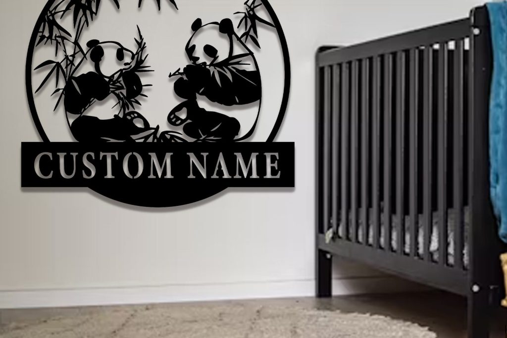 ***Custom Panda Metal Wall Art, Custom Metal Panda Sign, Bedroom Sign, Panda Sign With Name, Custom nursery Decor, Metal Wall Decor, 8-24 Inch***