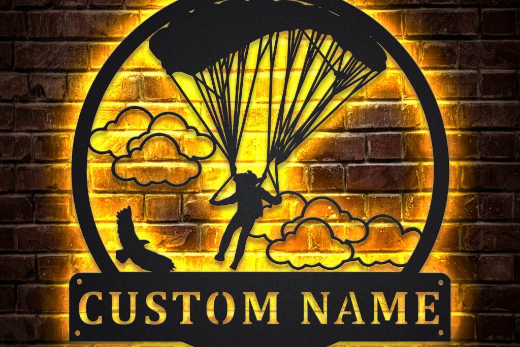 Custom Parachuting Metal Sign with LED V4 – Skydiving Decor