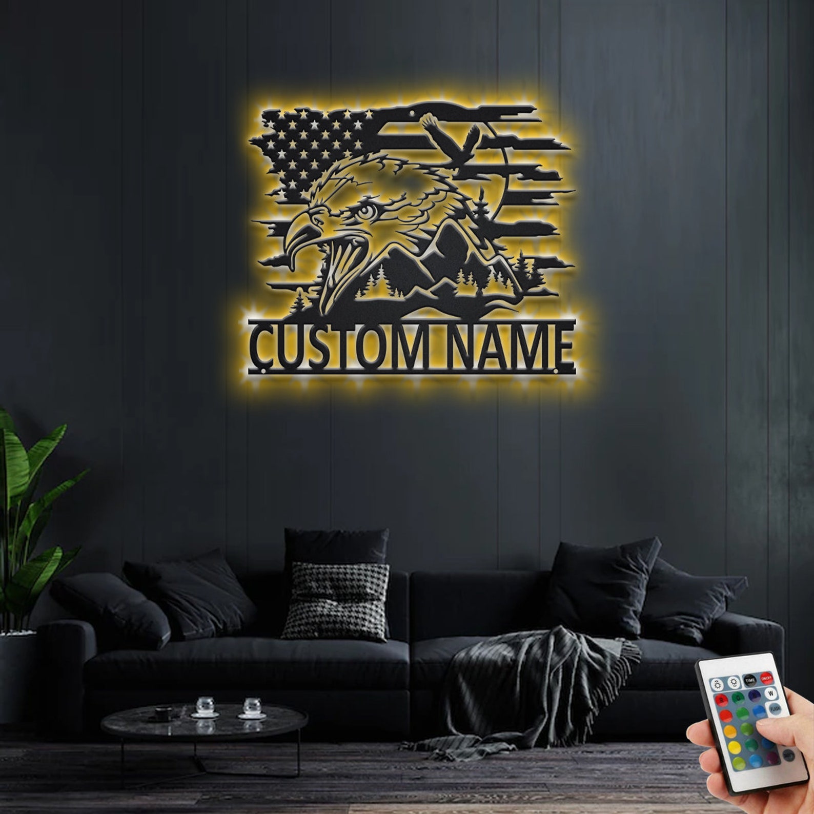 Custom Patriotic Eagle Sign, Personalized LED Decor