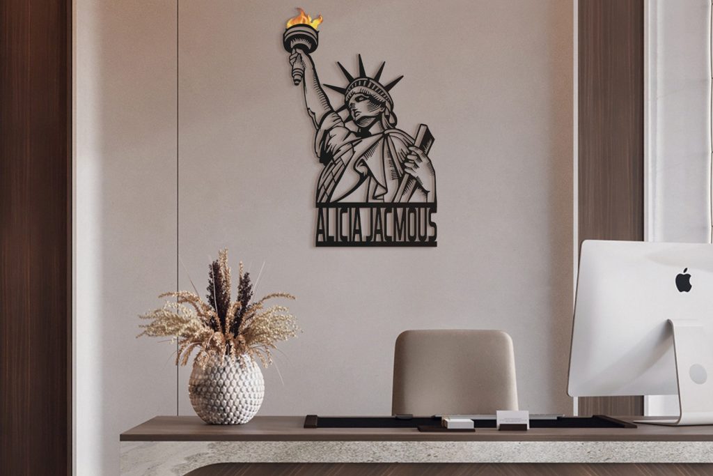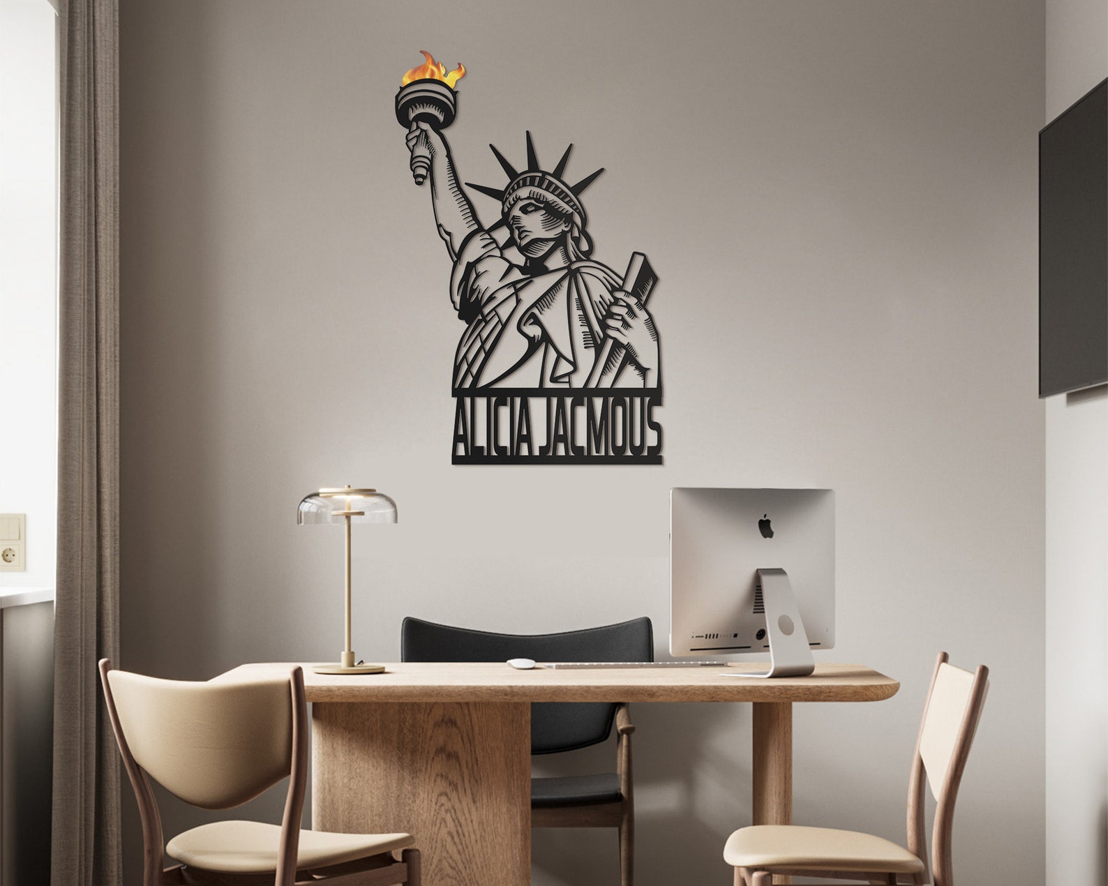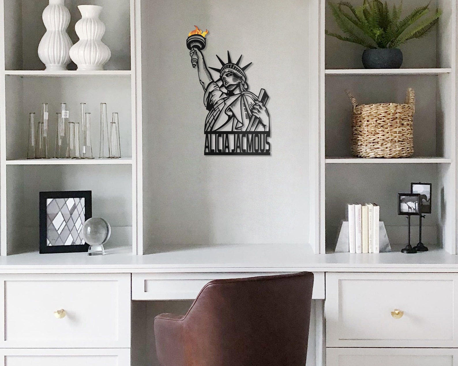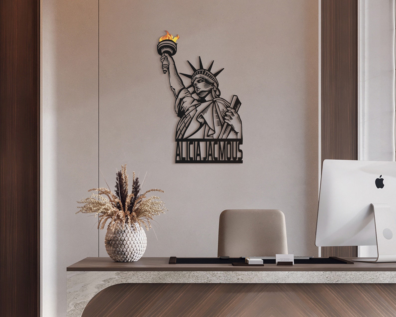 Custom Metal American Sign, Patriotic Wall Art, Statue of Liberty Name Sign, Patriotic Gifts, Metal Wall Art, Wall Hangings, Personalized
