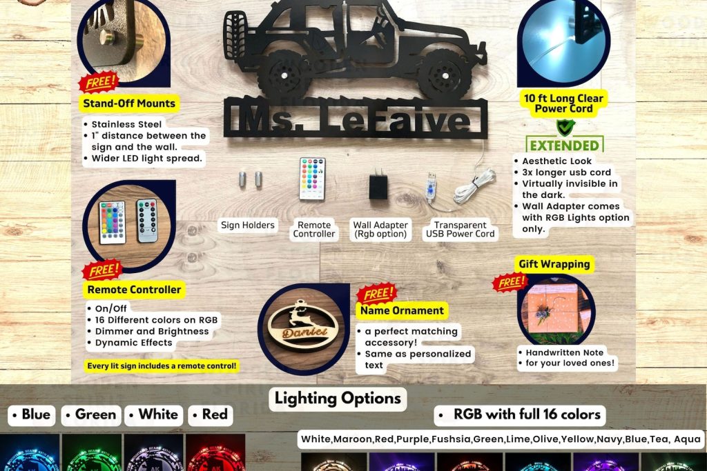 Metal: Perfect for both indoor and outdoor spaces, our metal sign uses 18-gauge stainless steel with an array of color options, protected by powder-coated paint. Its waterproof LED ensures longevity.