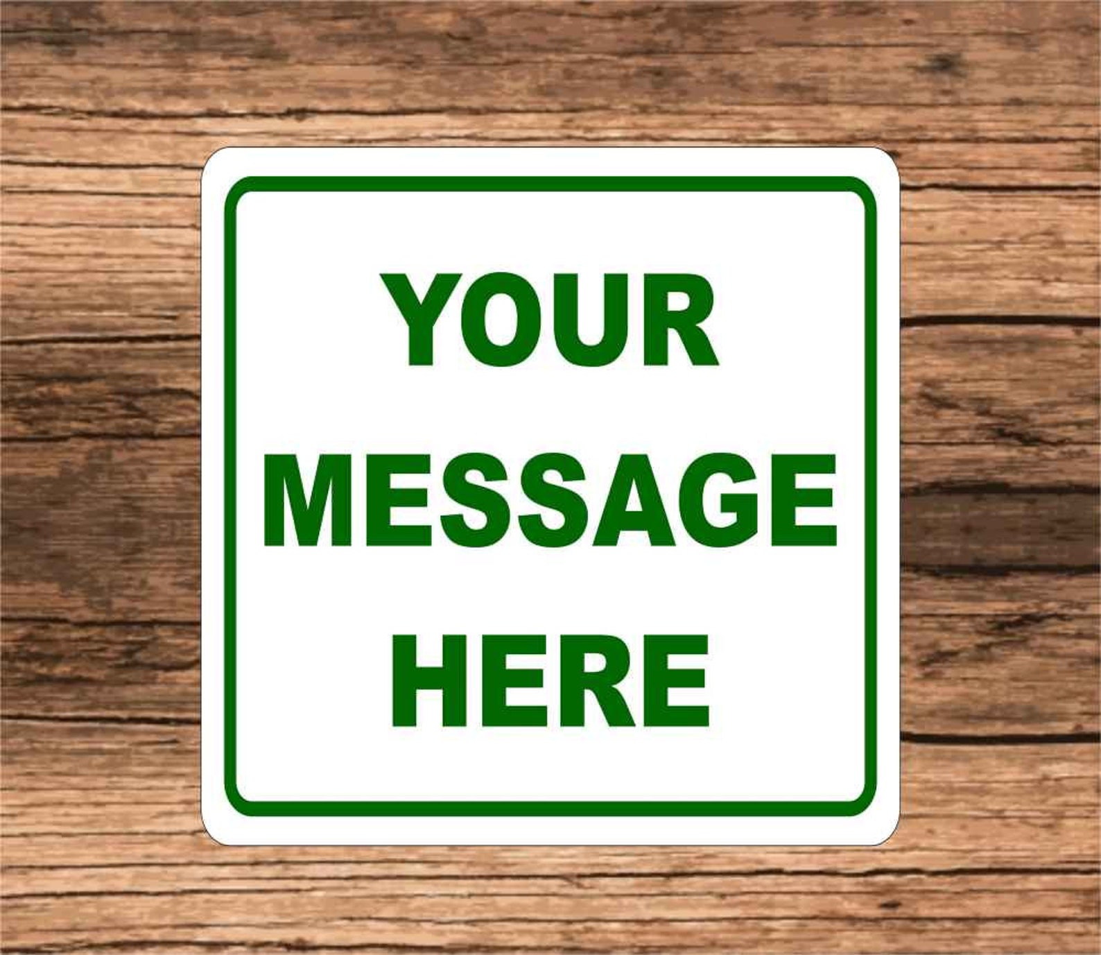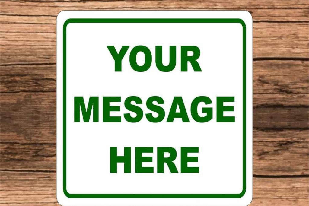 During the checkout process, leave us a message in the notes to the seller section telling us the message you want on the sign. We will print on the sign etly what you type into the notes to the seller section.