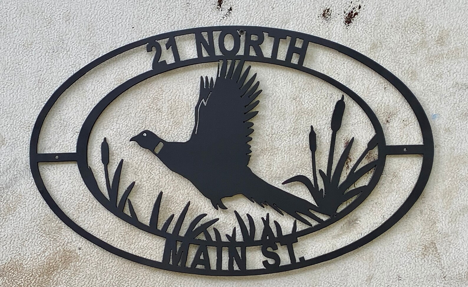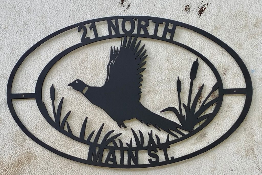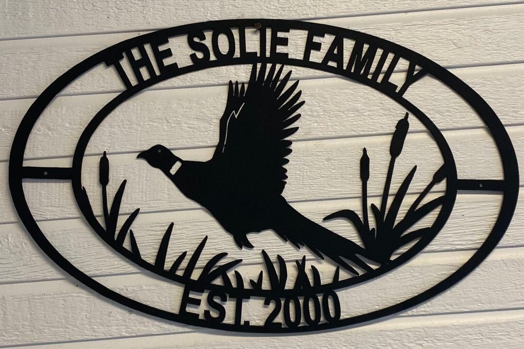Custom metal sign. Pheasant scene with personalization.